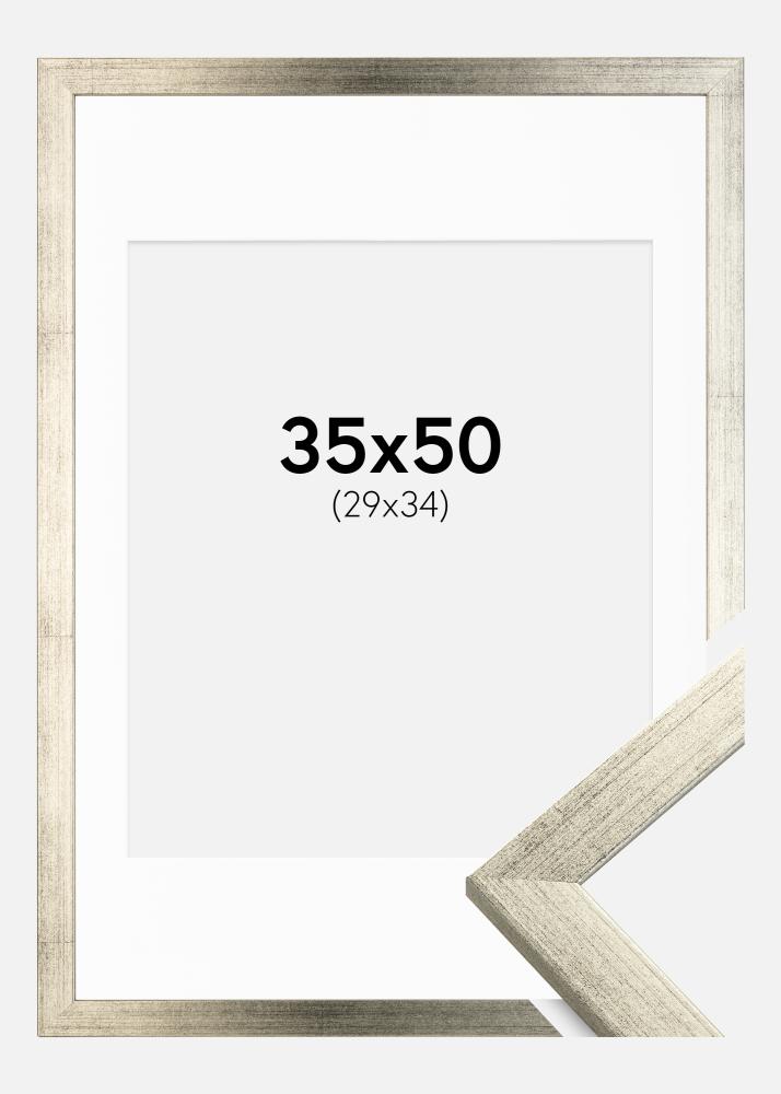 Marco Stilren Plateado 35x50 cm - Paspartú Blanco 30x35 cm