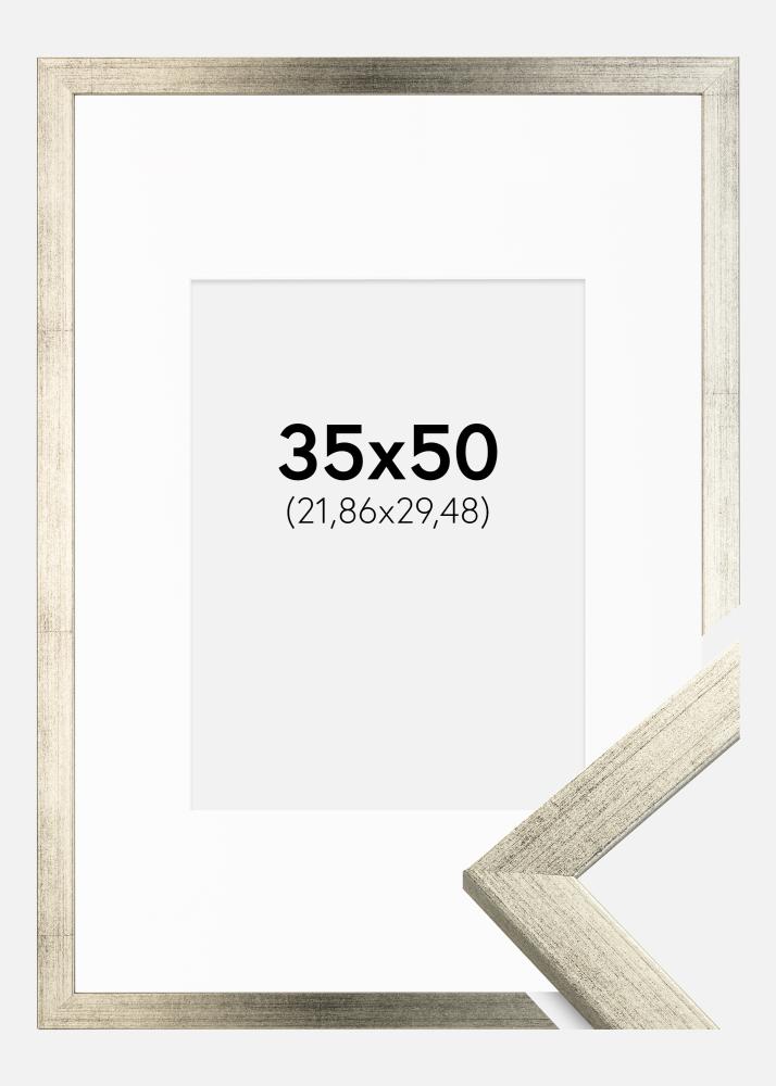 Marco Stilren Plateado 35x50 cm - Paspartú Blanco 9x12 inches