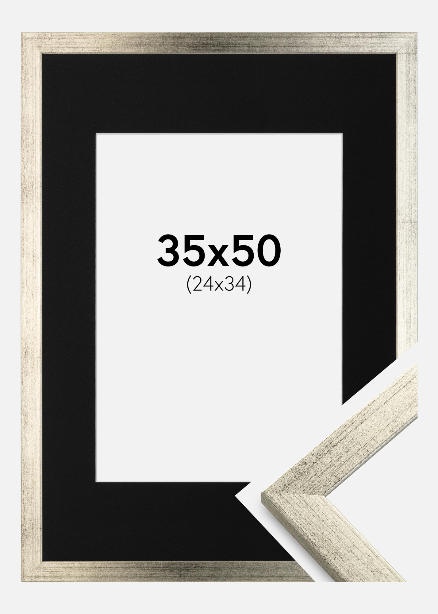 Marco Stilren Plateado 35x50 cm - Paspartú Negro 25x35 cm