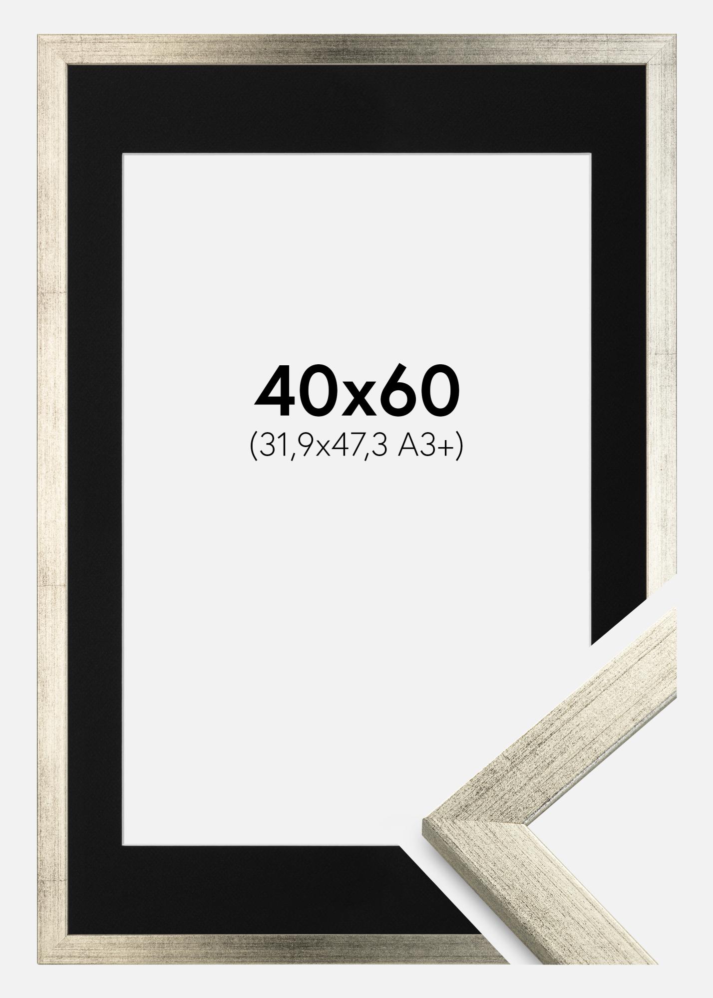 Marco Stilren Plateado 40x60 cm - Paspartú Negro 32,9x48,3 cm (A3+)