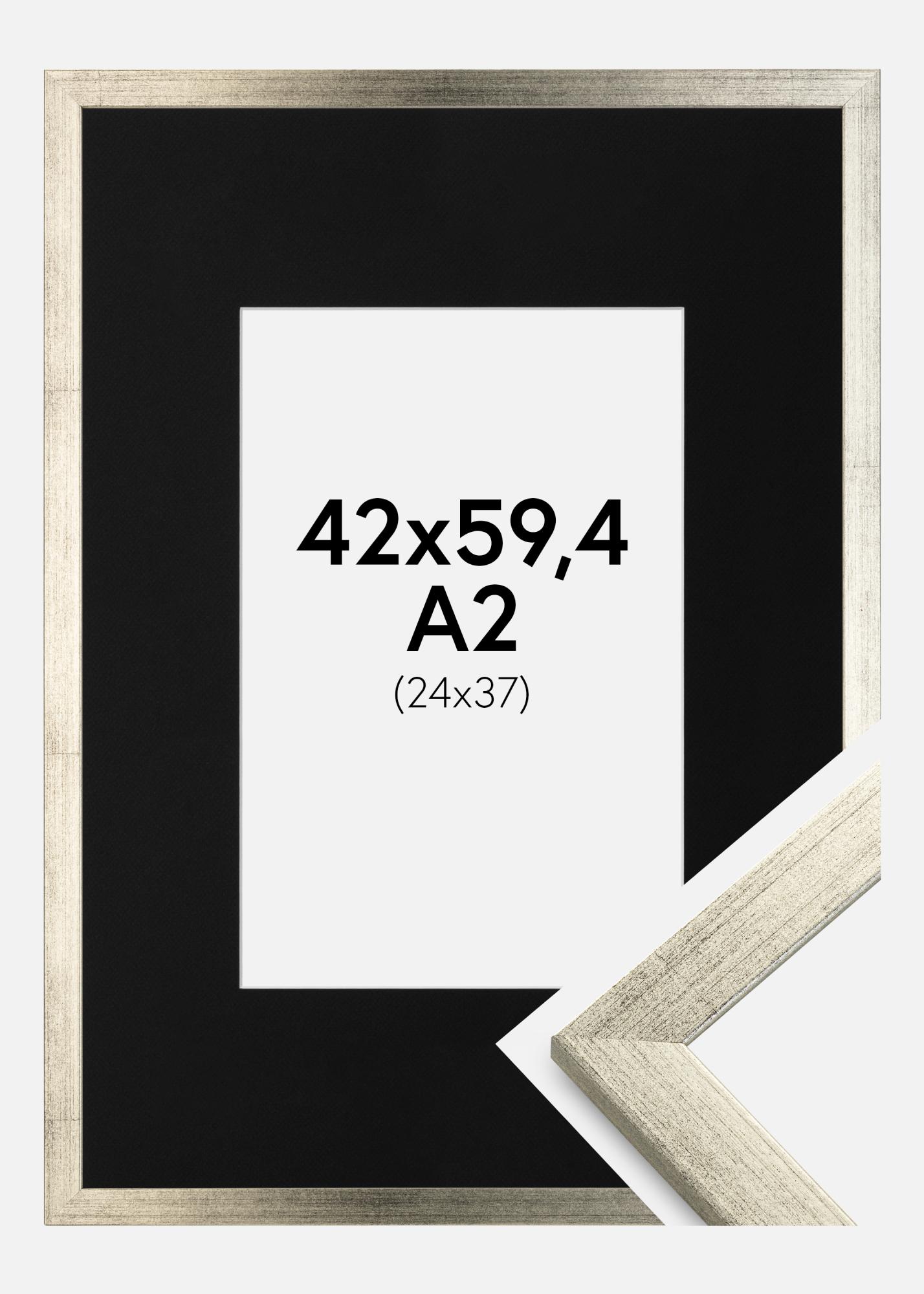 Marco Stilren Plateado 42x59,4 cm (A2) - Paspartú Negro 25x38 cm
