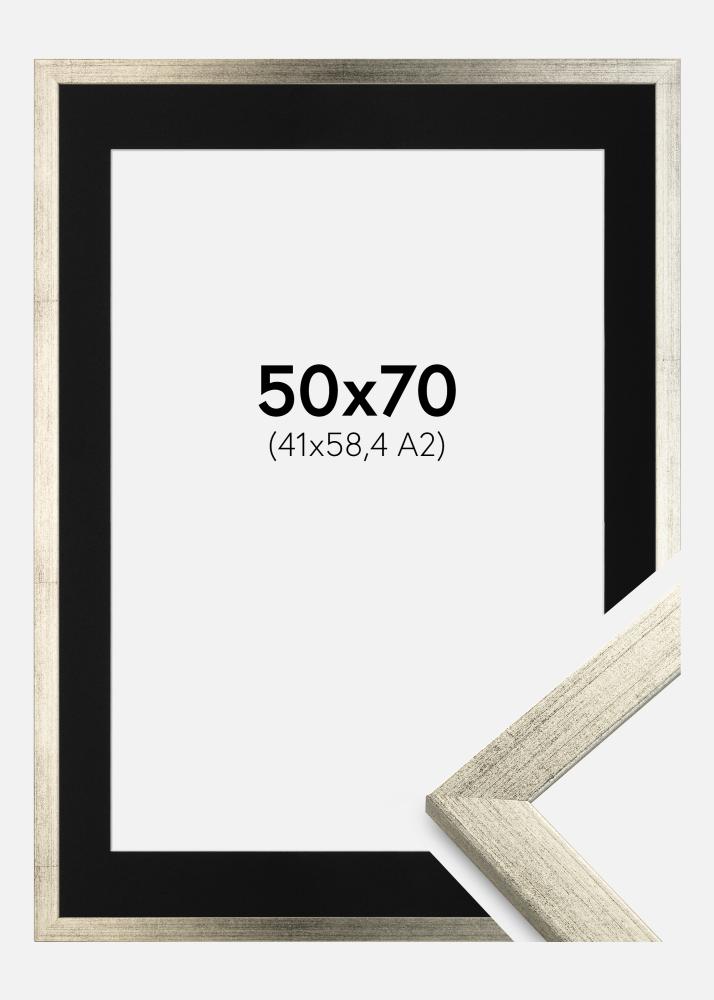 Marco Stilren Plateado 50x70 cm - Paspartú Negro 42x59,4 cm (A2)