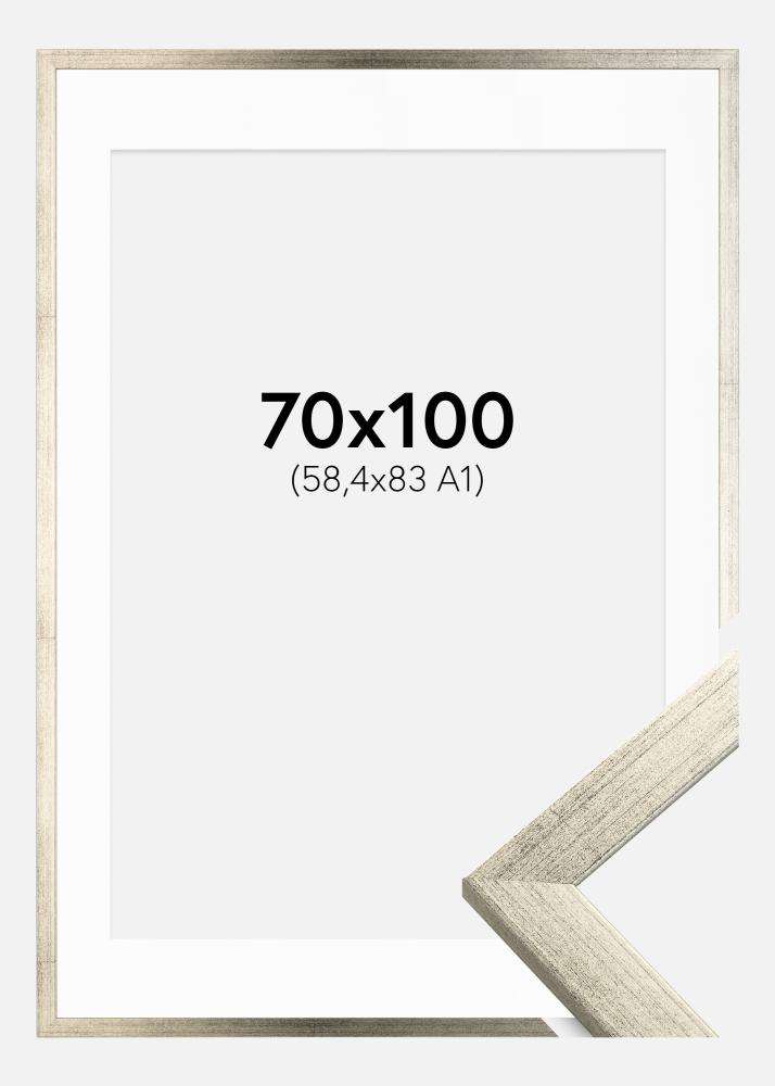 Marco Stilren Plateado 70x100 cm - Paspartú Blanco 59,4x84 cm (A1)