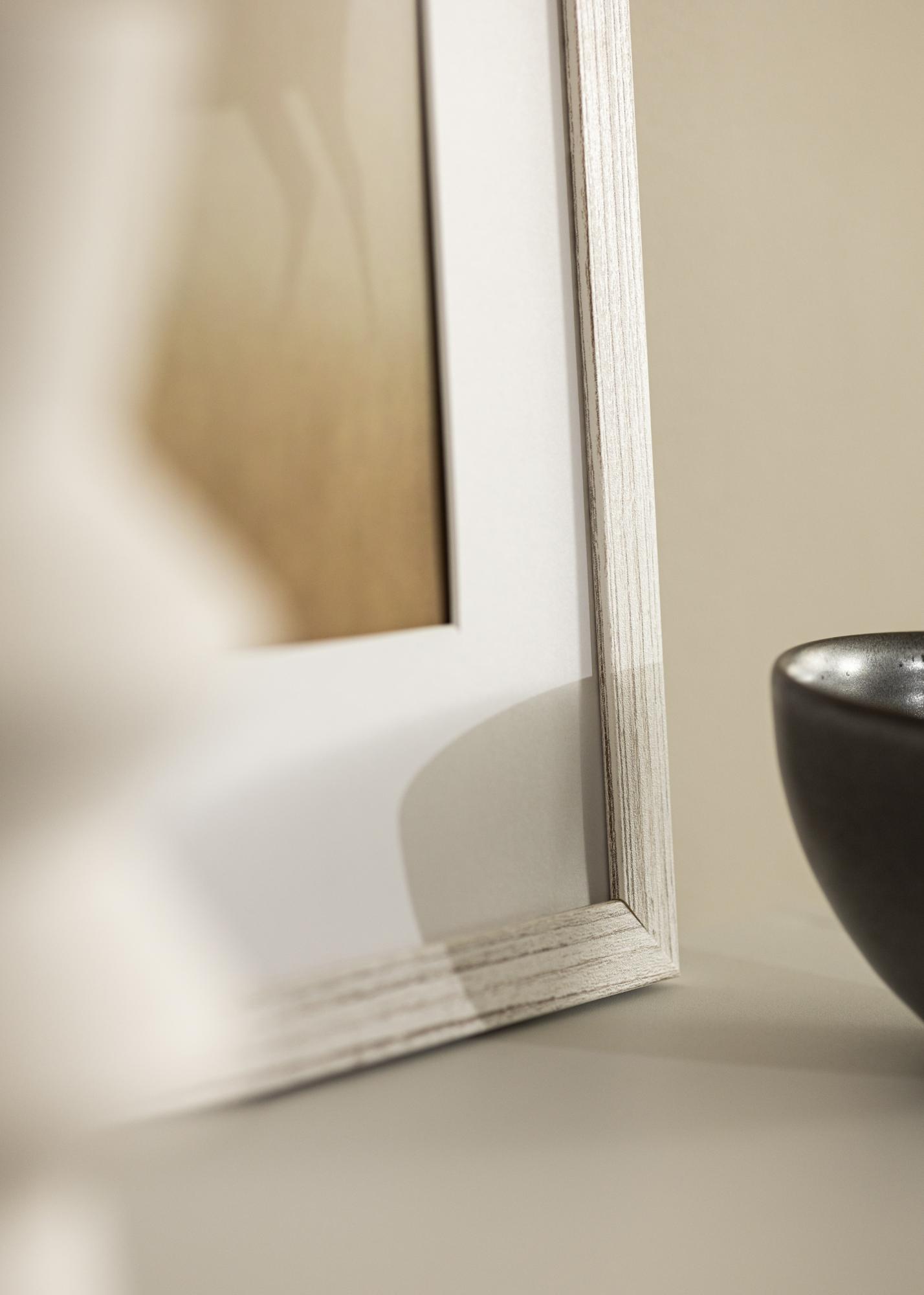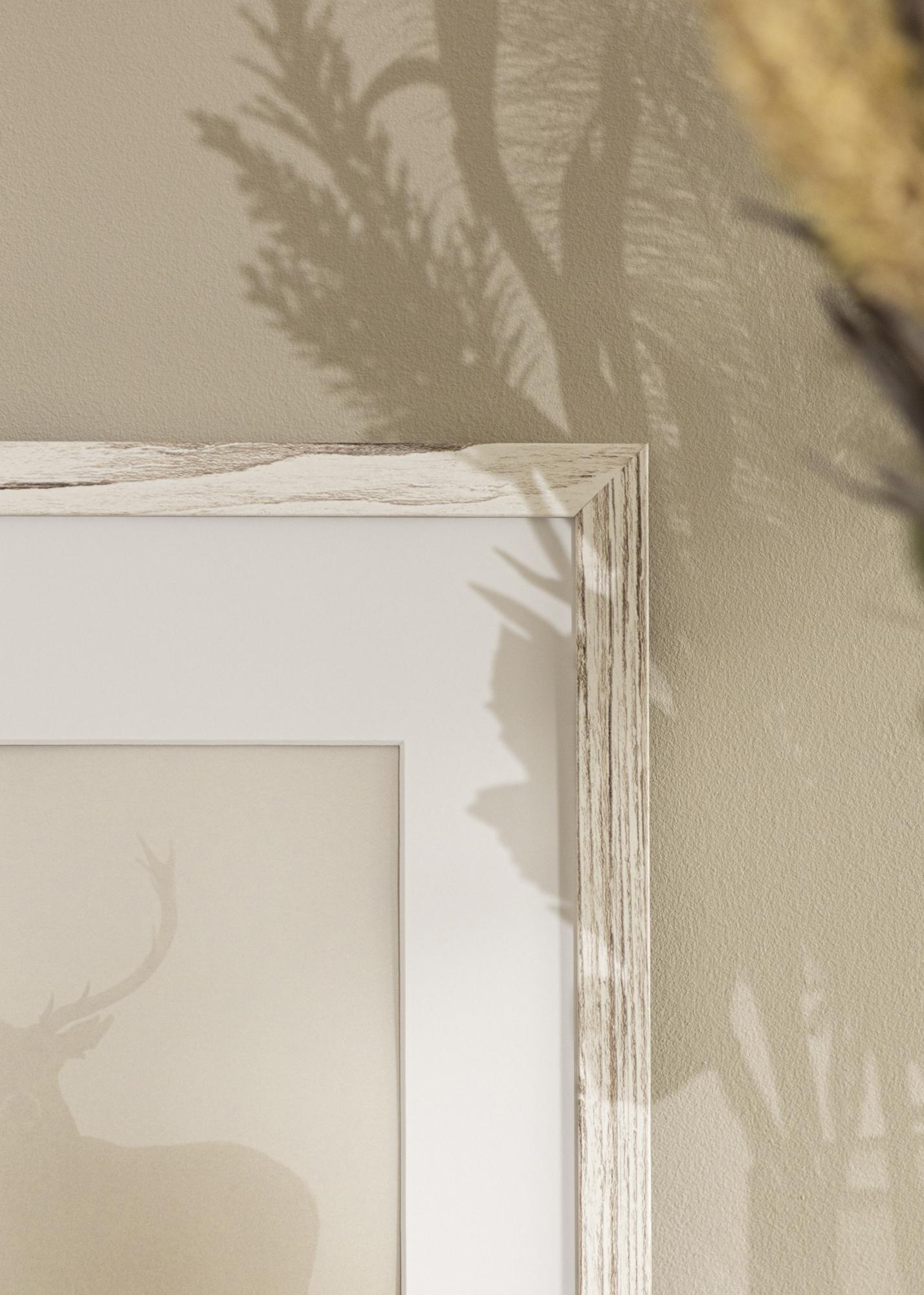 El marco tiene un ancho de 20 mm y una profundidad de 14 mm, lo que proporciona una sensación estable y robusta. La passepartout, también en blanco, crea un hermoso encuadre que resalta el motivo de manera elegante.