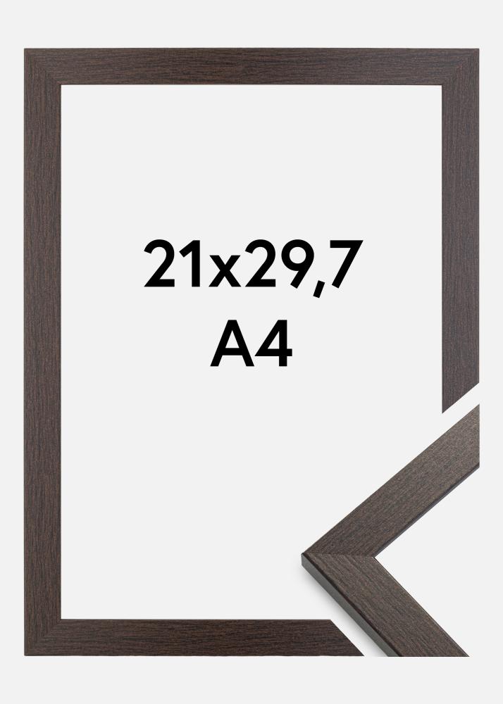 Este es un marco de calidad en madera marrón oscuro que se asemeja a la madera de wenge maciza. El listón del marco mide 20 mm de ancho y 14 mm de profundidad, estas dimensiones hacen que este marco sea sólido y estable, enmarcando elegantemente tu motivo. En la parte trasera del marco hay soportes de pared que te permiten colgar la imagen tanto en posición vertical como horizontal. El marco está hecho de pino y tiene vidrio auténtico. El elegante Wenge está disponible en varios tamaños, siendo este de 21x29,7 cm y adecuado para fotos de tamaño A4.