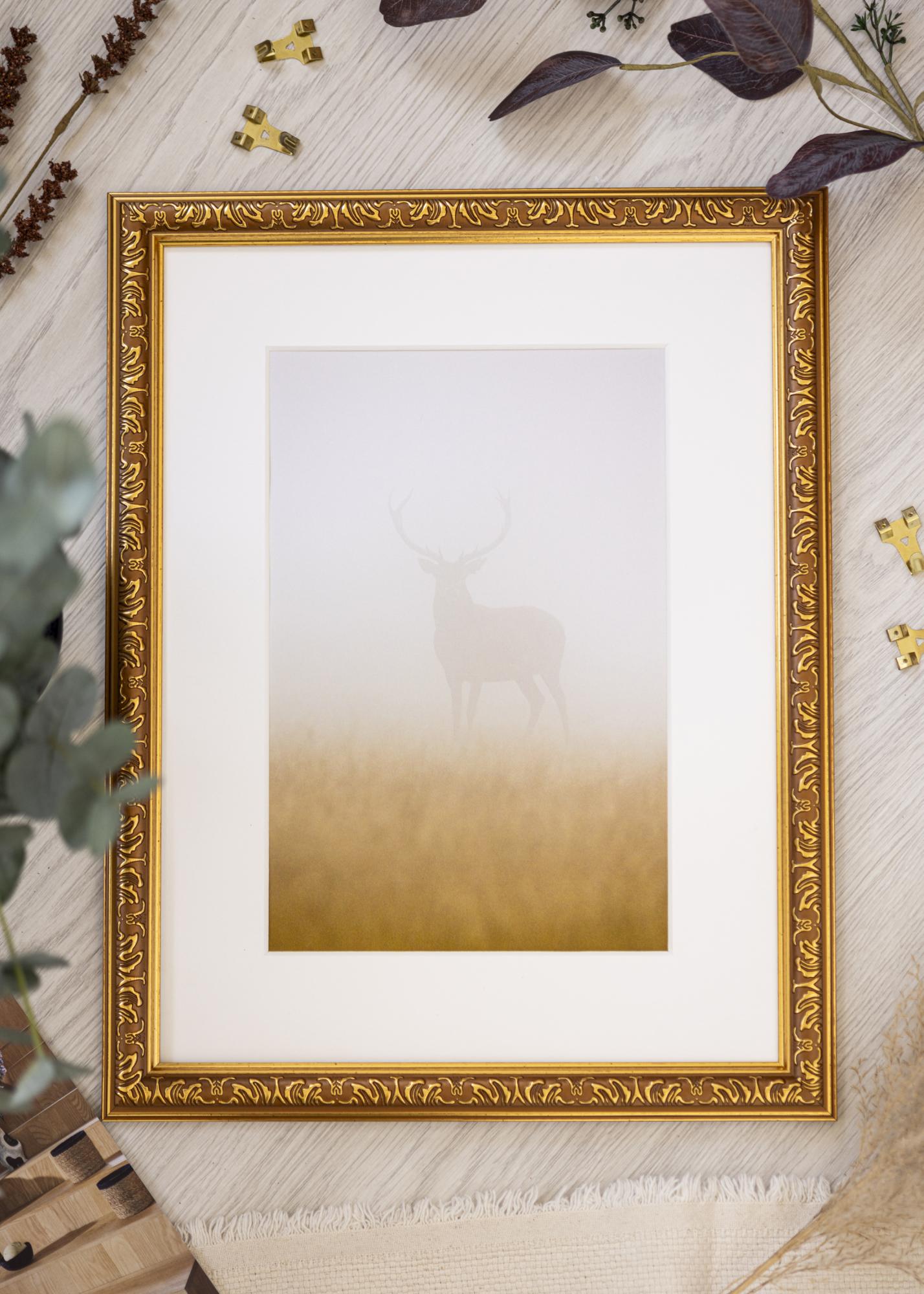Transforma tus imágenes en obras de arte con nuestro elegante marco dorado, completo con un paspartú blanco. Este marco de fotos es perfecto para imágenes de tamaño 40x60 cm y ofrece un enmarcado sofisticado que resalta el motivo de manera elegante.