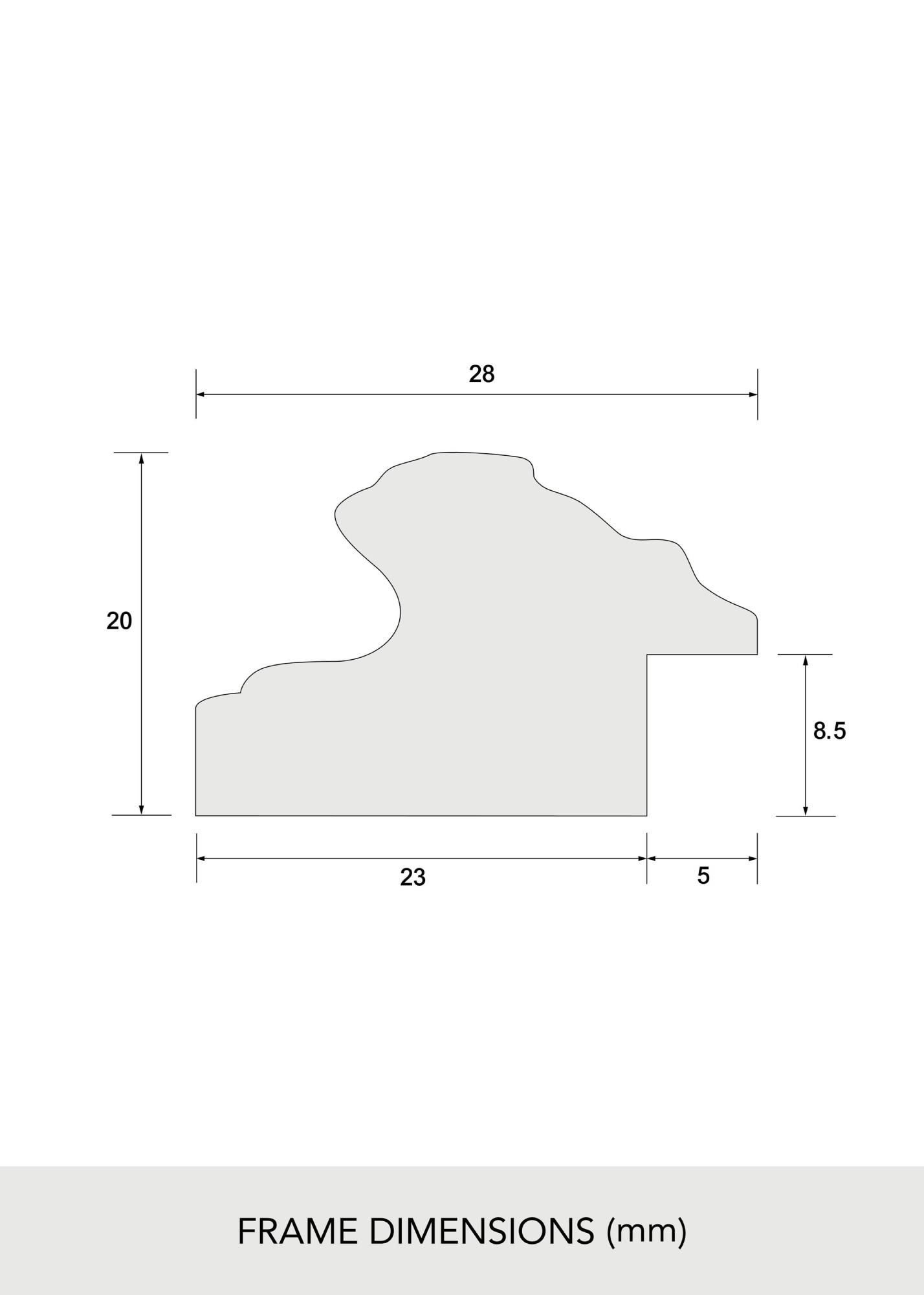 El marco está fabricado de material compuesto, lo que le confiere una construcción duradera y ligera. Con una moldura de 28 mm de ancho y una profundidad de 20 mm, este marco ofrece un encuadre robusto que realmente resalta tu tema. Está equipado con colgadores de metal en la parte posterior, lo que facilita colgarlo tanto horizontal como verticalmente, dependiendo de lo que mejor se adapte a tu espacio.