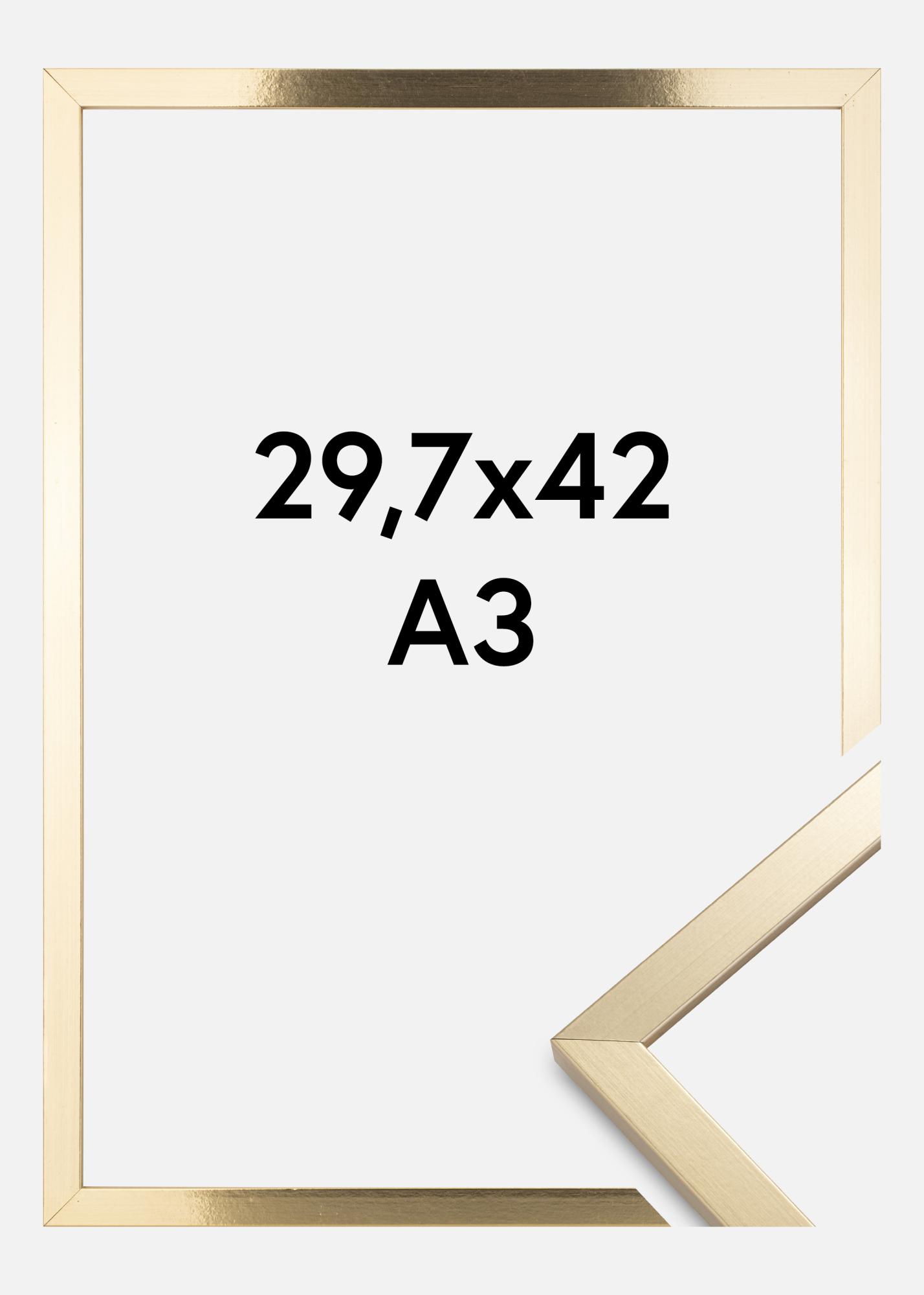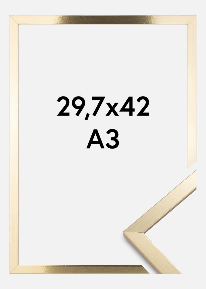 Cree una atmósfera elegante y atemporal en su hogar con nuestro elegante marco dorado en tamaño 29,7x42 cm (A3). Este marco para fotos de color dorado es el marco perfecto para sus obras de arte, certificados o fotografías favoritas. Con su superficie brillante y su diseño clásico, se convierte en el foco de atención en cualquier pared.
