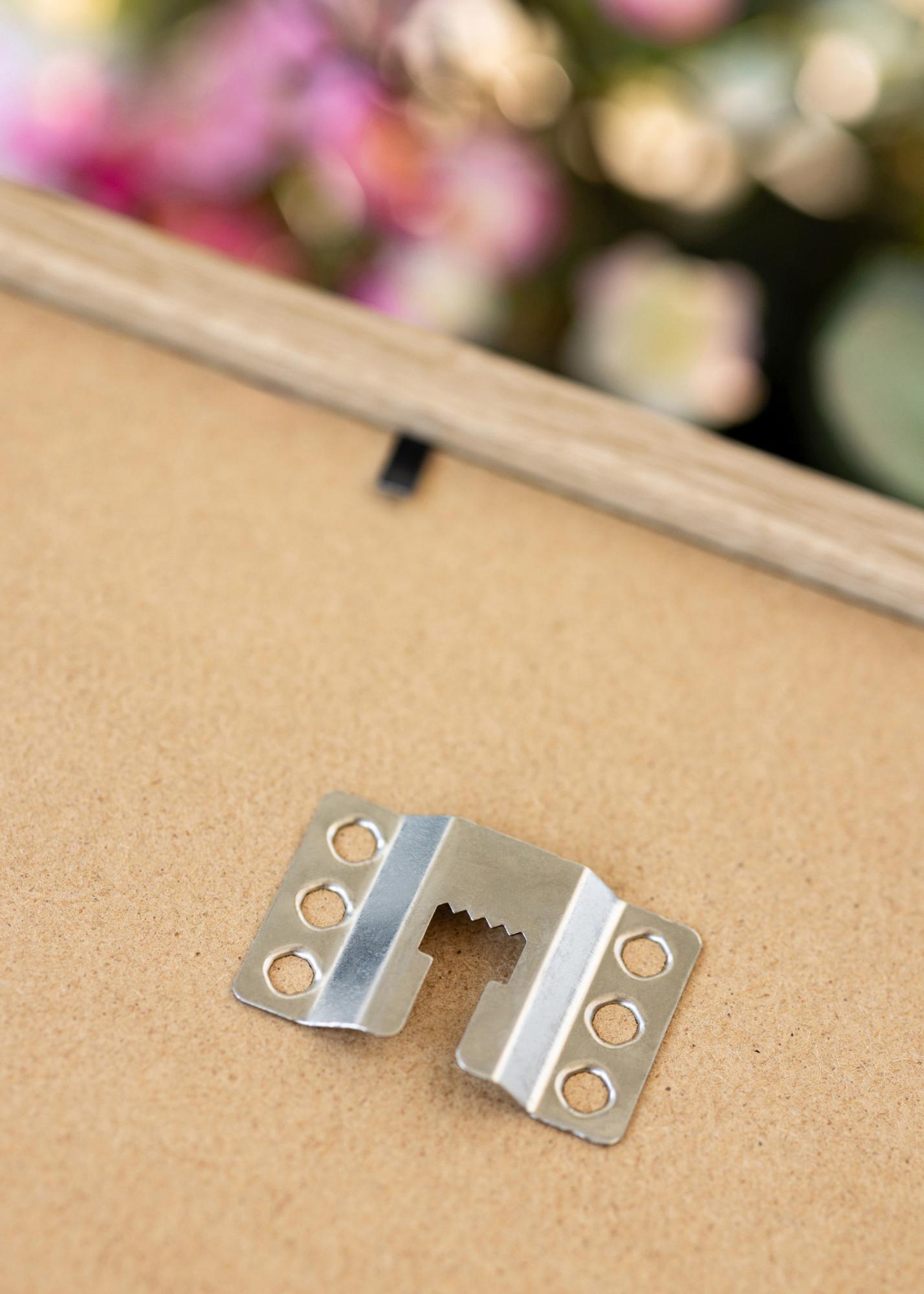 El marco está fabricado en material MDF con un acabado laminado de color roble y tiene un perfil de marco fino de 14 mm. Hay mucho espacio para complementar tus imágenes con un paspartú de lujo, gracias a la profundidad interna del marco de 12 mm.