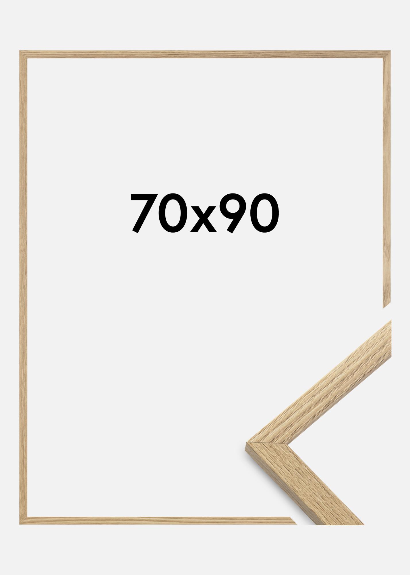 El marco está fabricado en material MDF con un acabado laminado de color roble y tiene un perfil de marco fino de 14 mm.