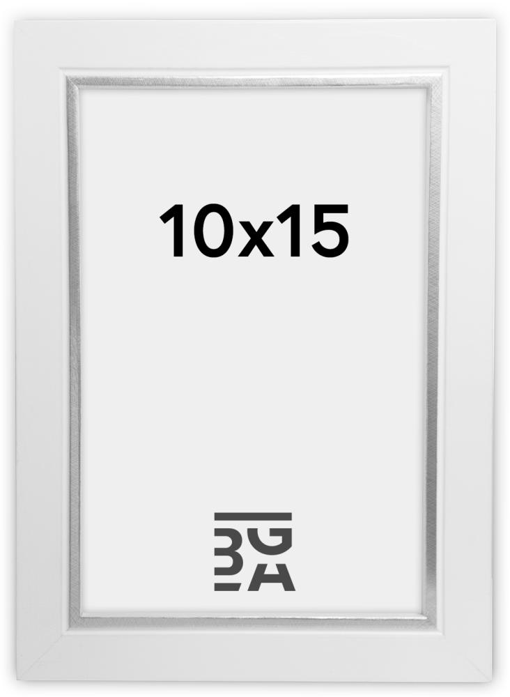 Elegante marco de fotos blanco de madera con un pequeño toque extra "Twist" en forma de un bonito borde plateado cerca de la imagen. Un marco perfecto para retratos. Perfecto para colocar en una estantería de cuadros para crear un bonito collage.