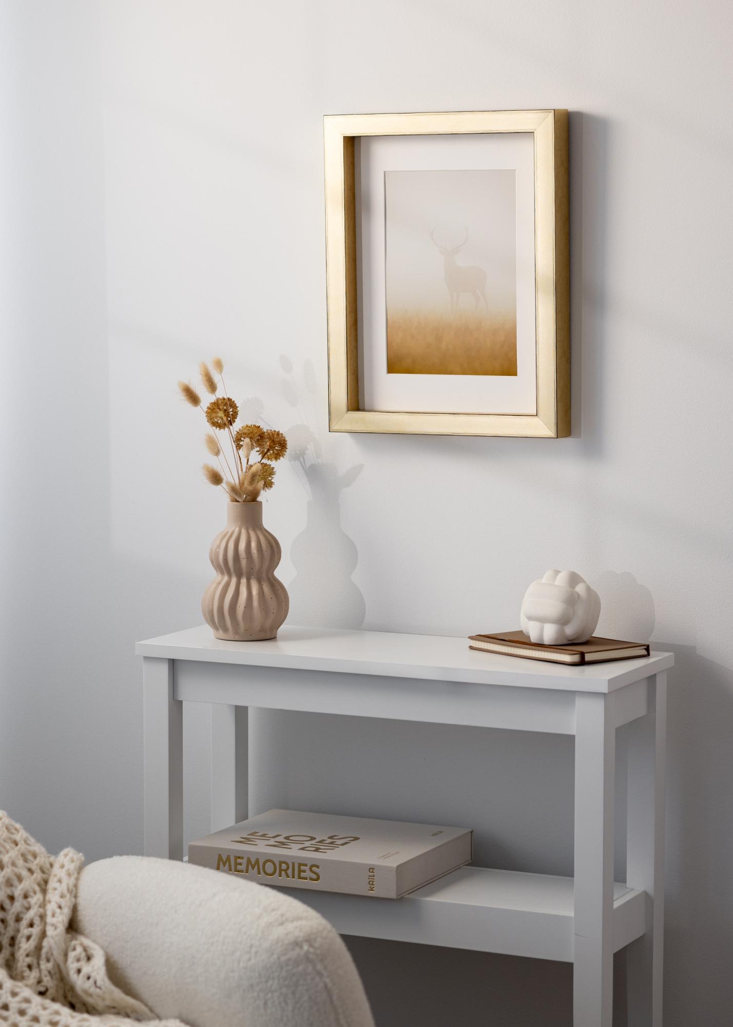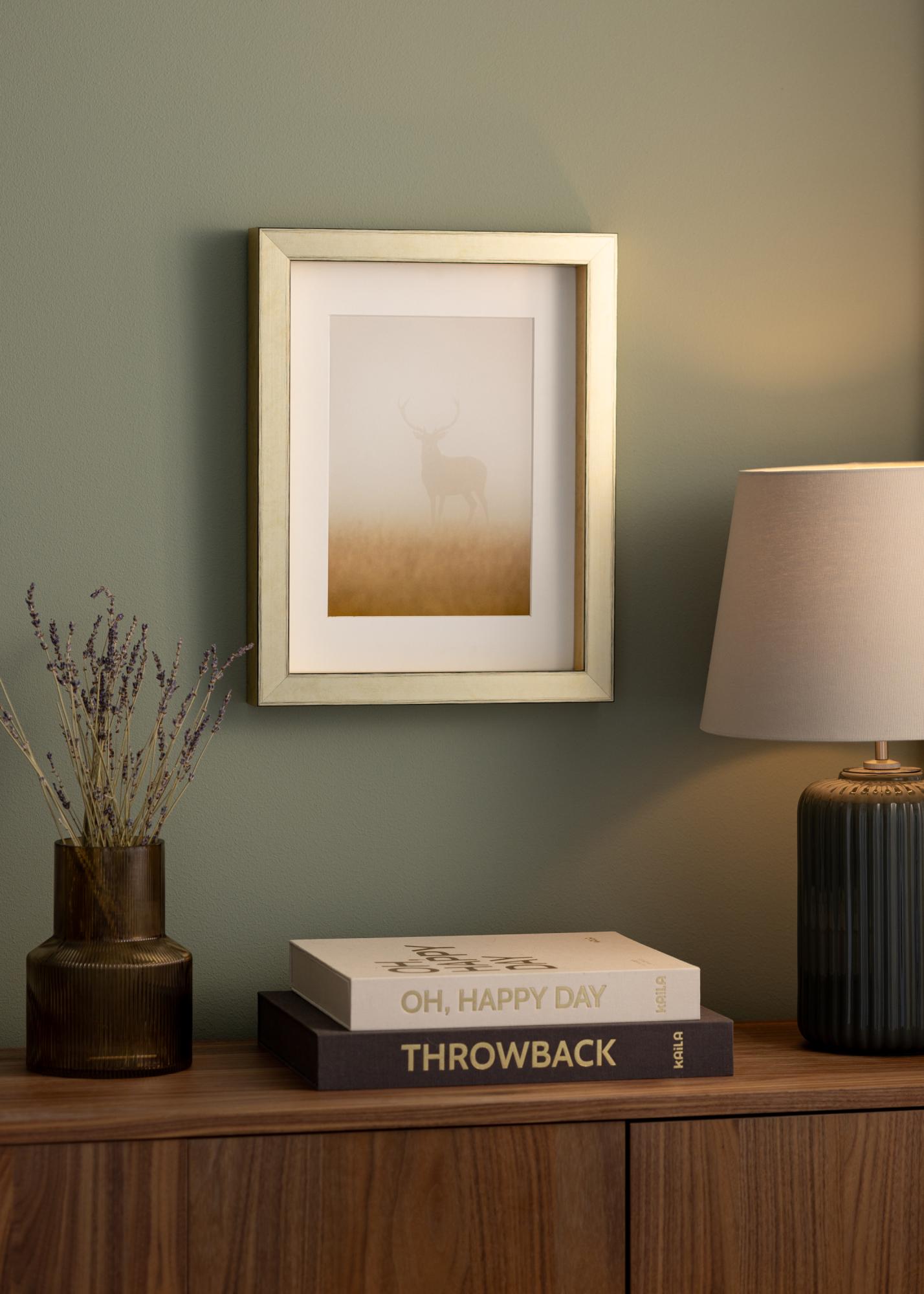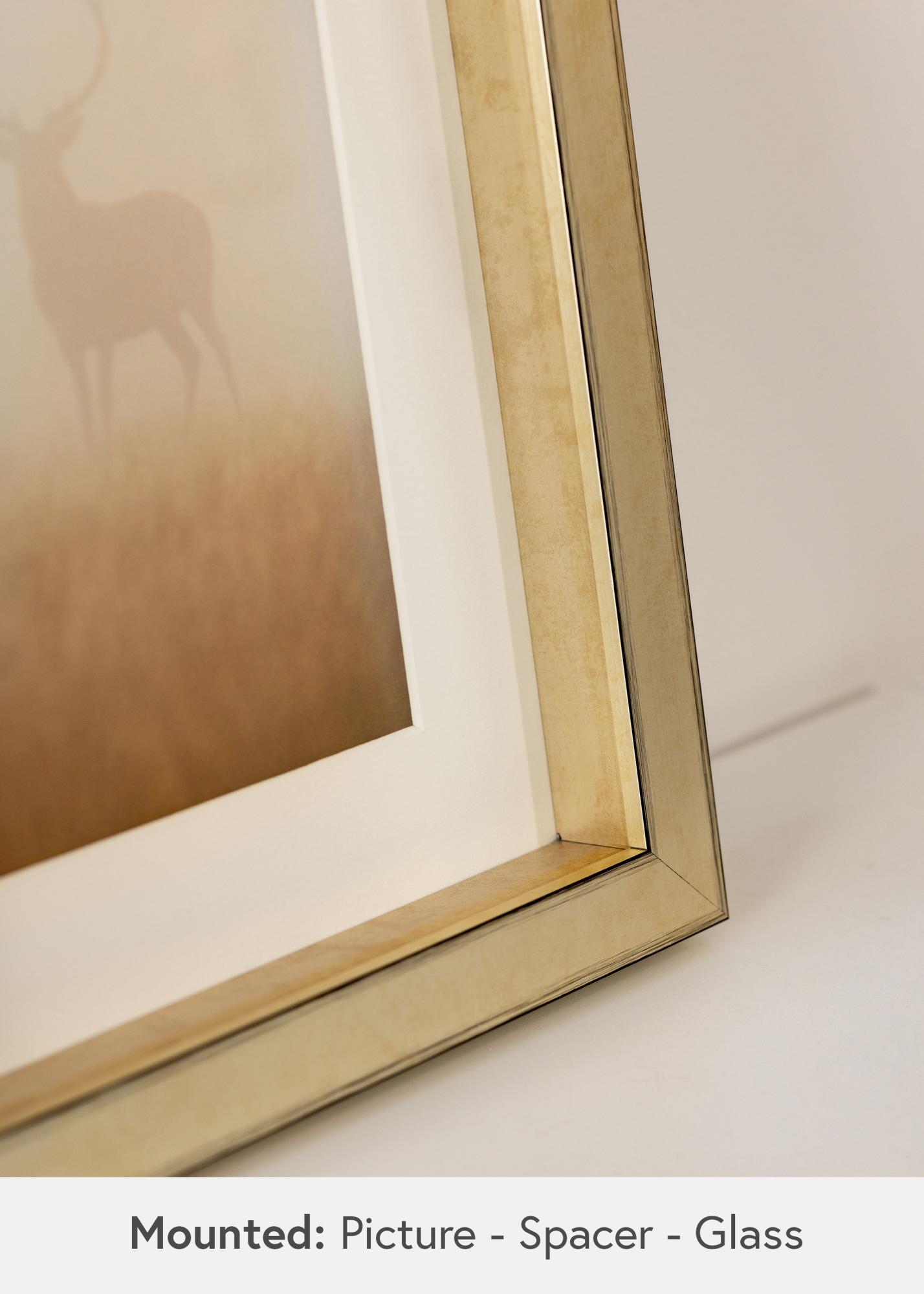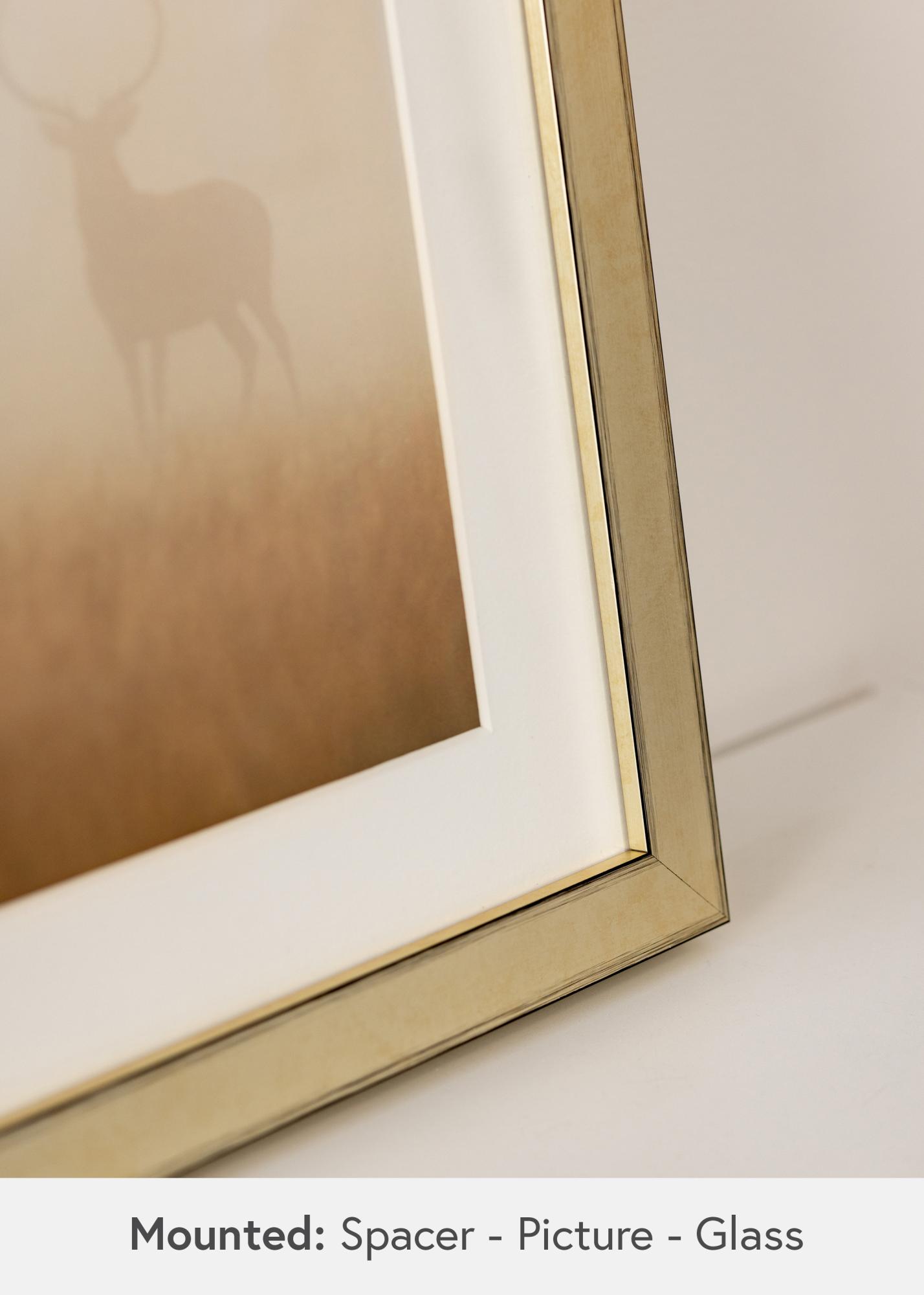 Con el Marco Tyr Oro, tienes la posibilidad de personalizar cómo deseas presentar tu motivo. Puedes optar por colocarlo al fondo del marco para crear una impresión flotante, o más cerca del frente para un enmarcado más tradicional. Esta flexibilidad facilita la combinación del marco tanto con tu obra de arte como con tu estilo de decoración.