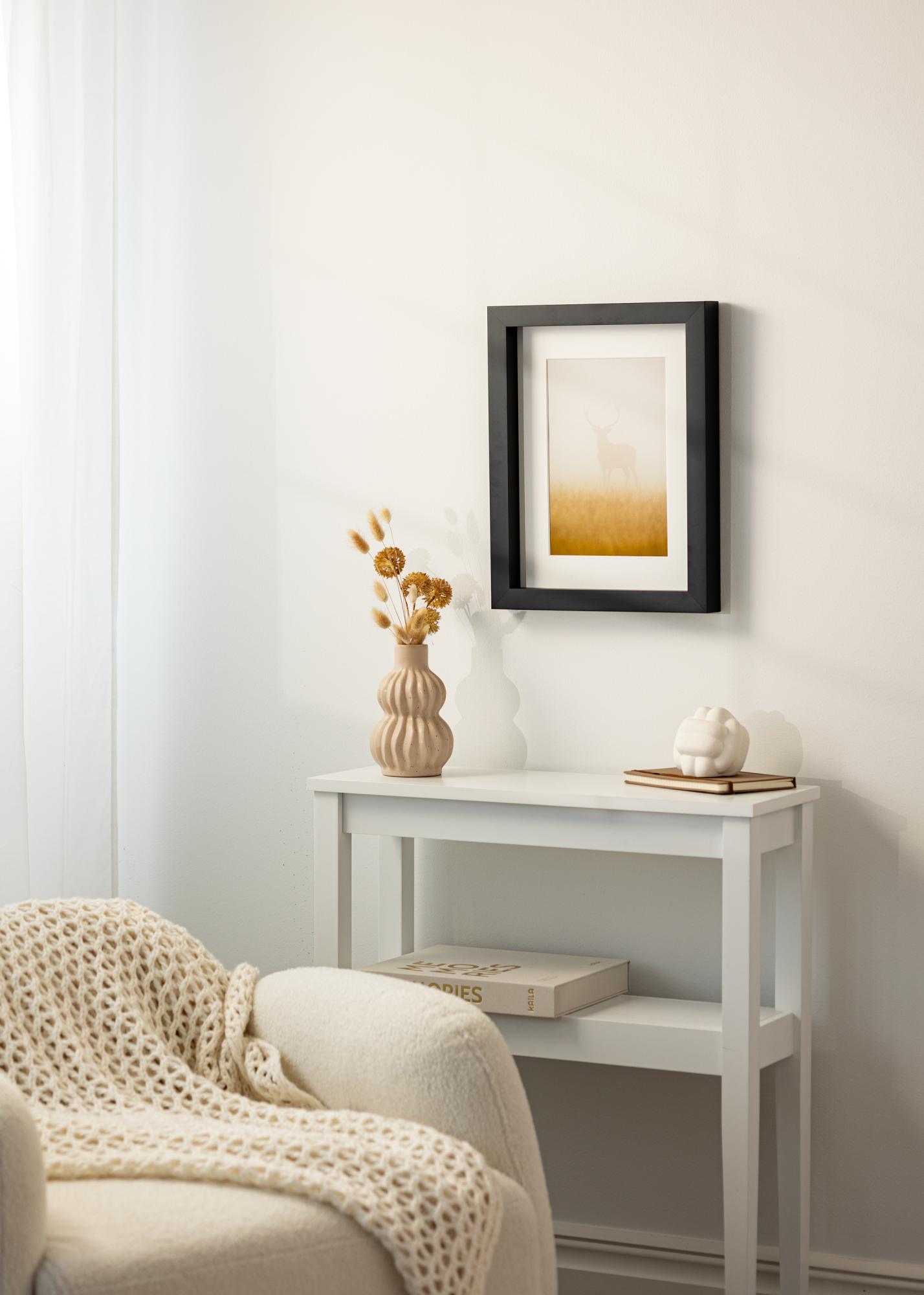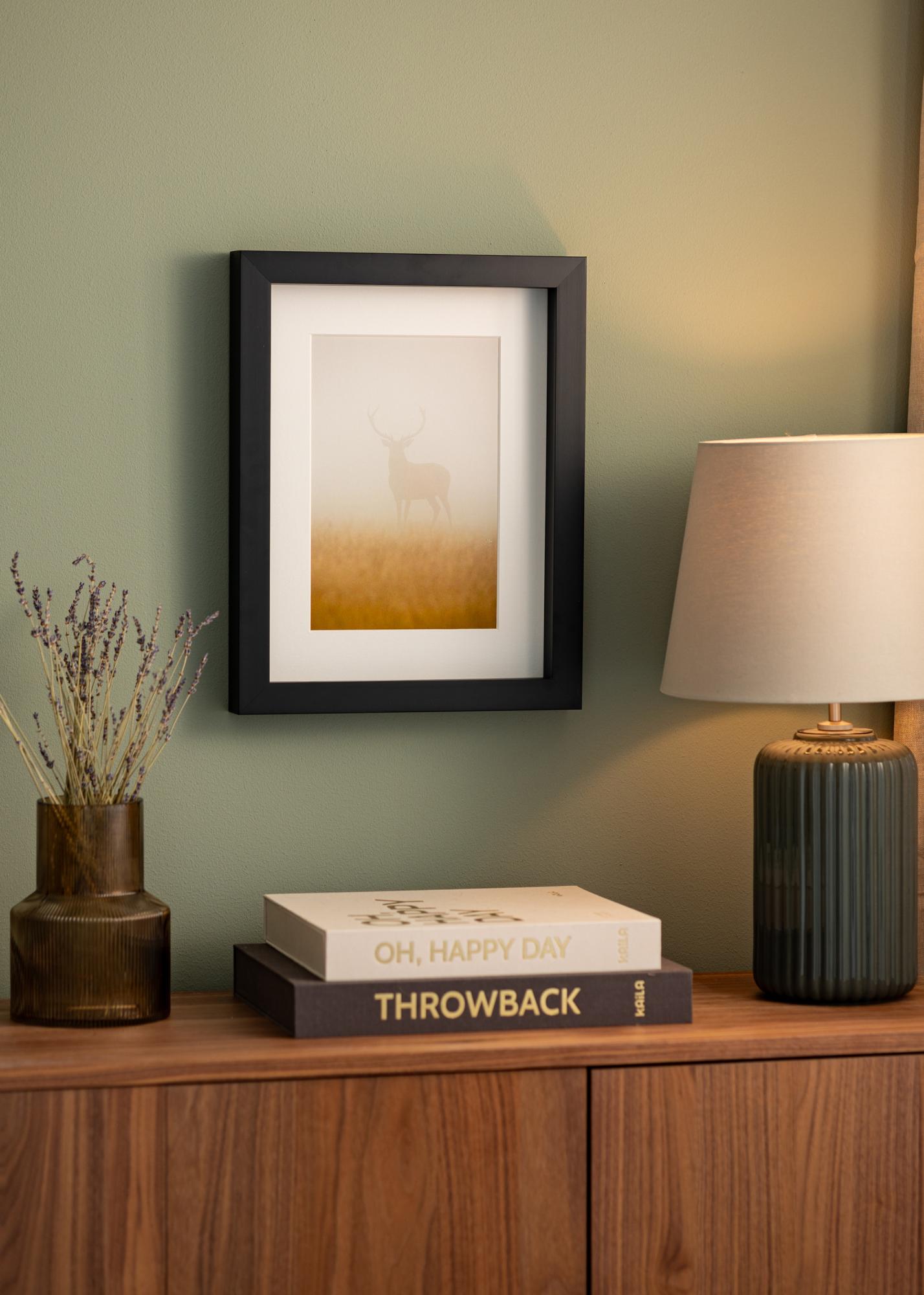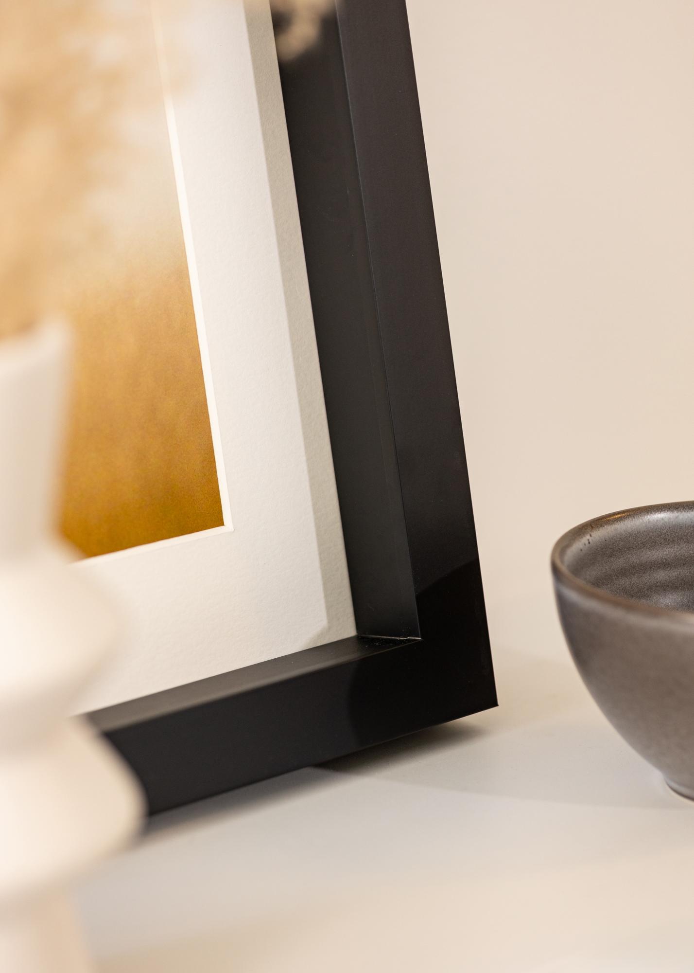 Una de las grandes ventajas del Marco Tyr Negro es su flexibilidad en cuanto a la colocación del motivo. Puedes elegir colocar tu obra de arte en la parte posterior del marco para crear una impresión flotante, o más cerca del frente para un aspecto más tradicional. Esta adaptabilidad hace que sea fácil combinar el marco tanto con tu obra de arte como con el resto de tu decoración.