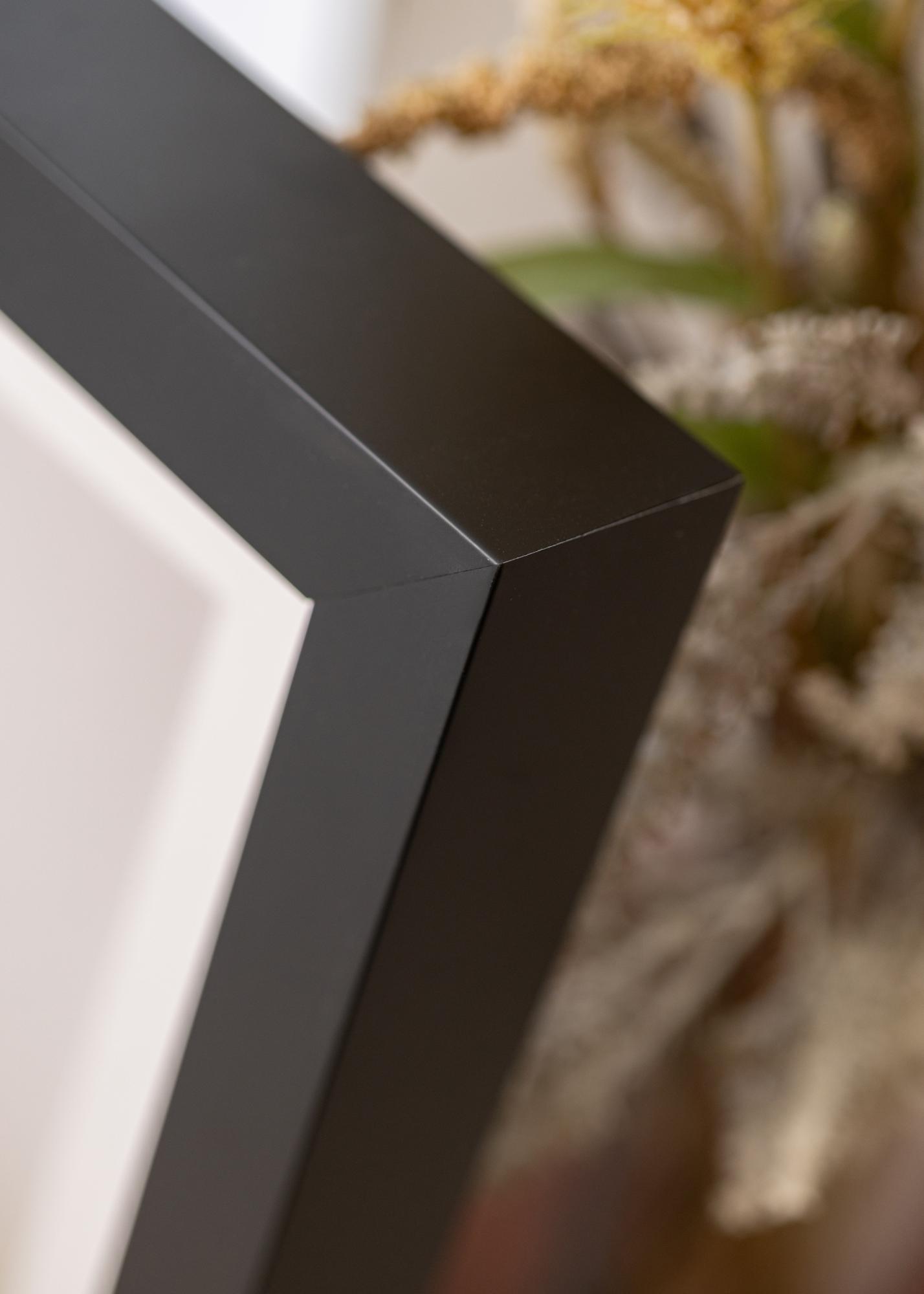 Marco Tyr Negro es un marco de cuadro a medida que fabricamos nosotros, lo que te brinda la oportunidad de obtener un marco de fotos que se adapte perfectamente a tu obra de arte o foto. Con su diseño elegante y moderno en negro, este marco ofrece un encuadre elegante que resalta el motivo de manera sofisticada. El color negro es profundo y atemporal, lo que permite que se integre fácilmente en diferentes tipos de decoraciones.