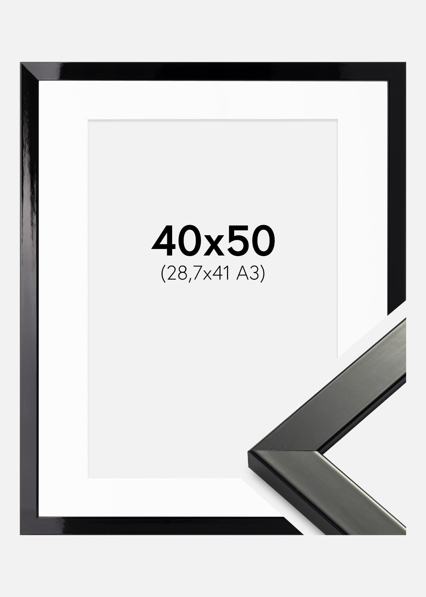 Marco Uppsala Negro Acabado brillante 40x50 cm - Paspartú Blanco 29,7x42 cm (A3)