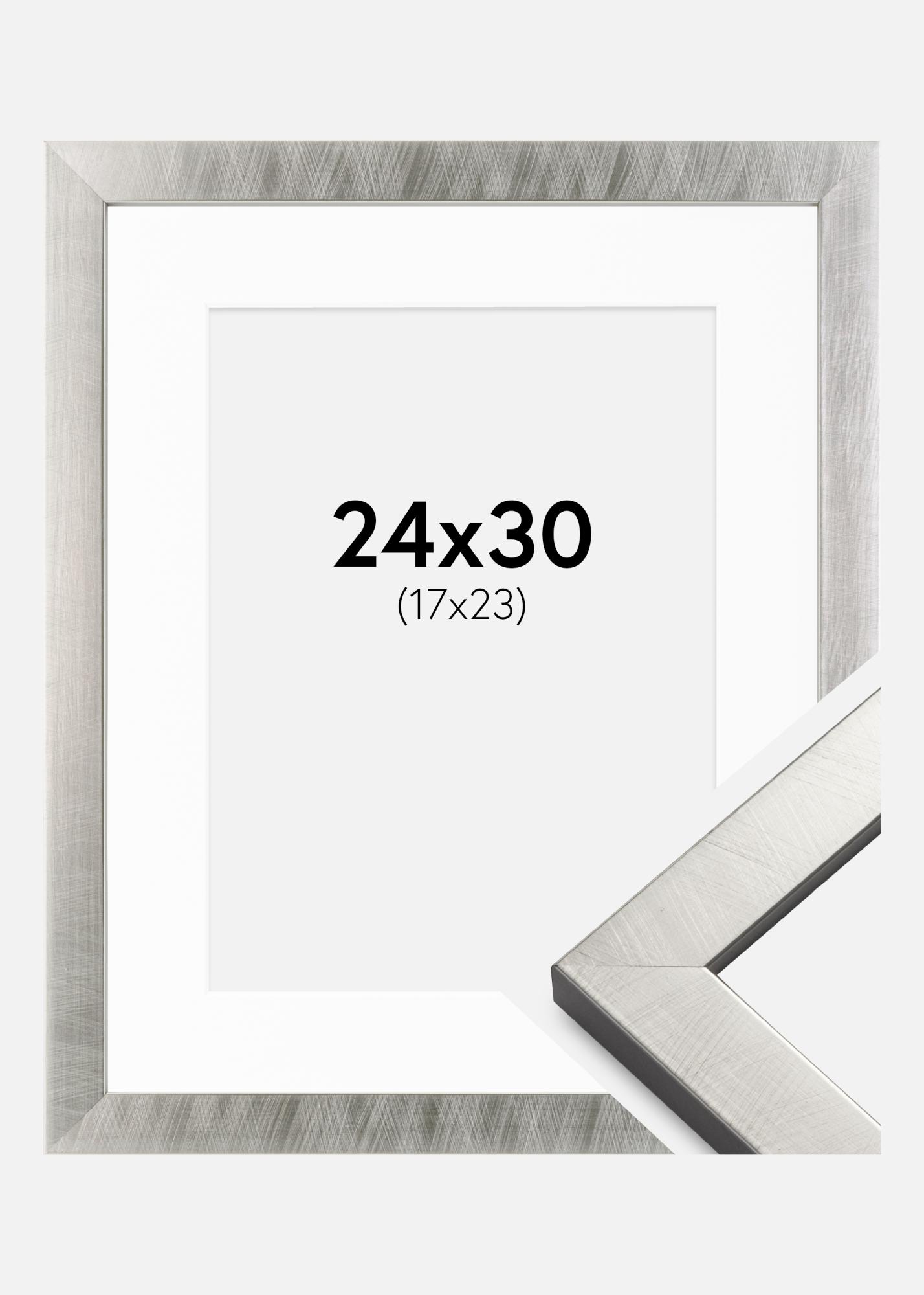 Marco Uppsala Plateado 24x30 cm - Paspartú Blanco 18x24 cm