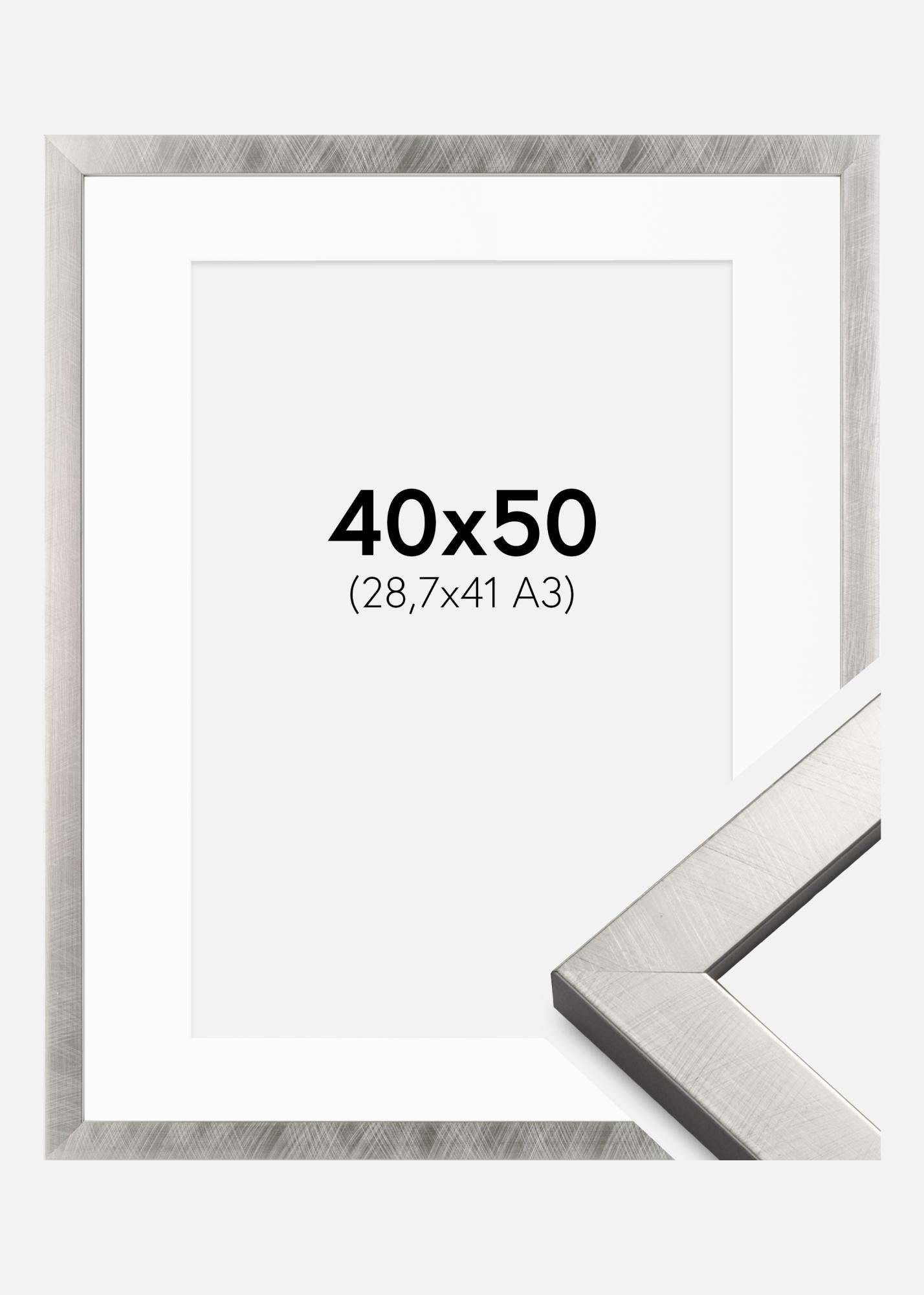 Marco Uppsala Plateado 40x50 cm - Paspartú Blanco 29,7x42 cm (A3)