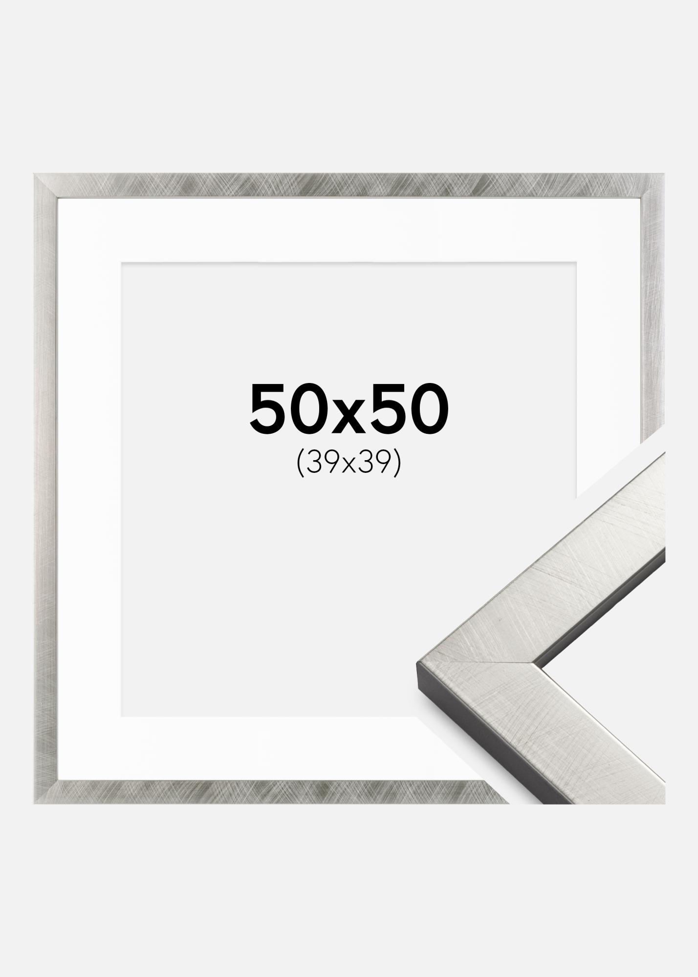 Marco Uppsala Plateado 50x50 cm - Paspartú Blanco 40x40 cm