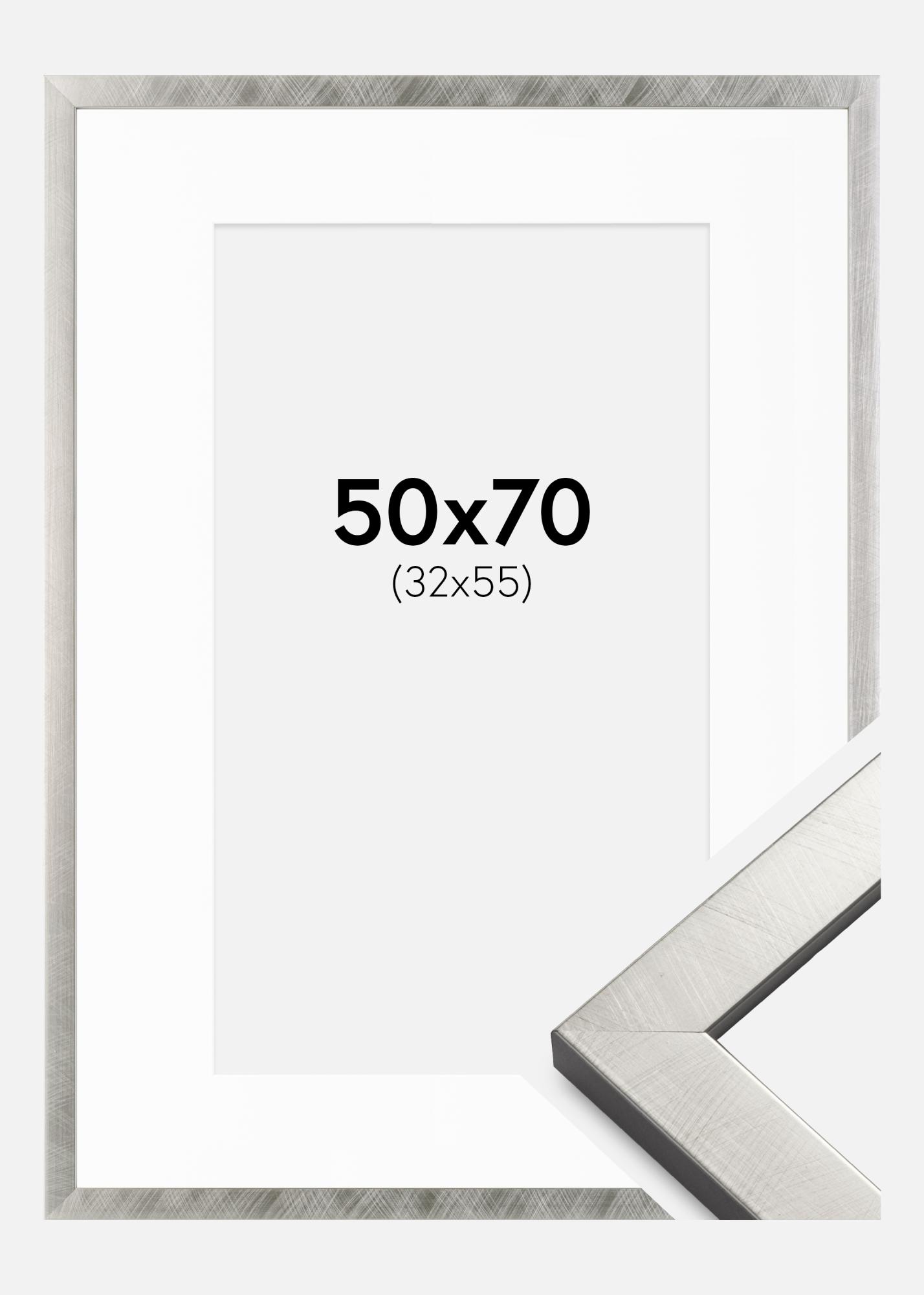 Marco Uppsala Plateado 50x70 cm - Paspartú Blanco 33x56 cm