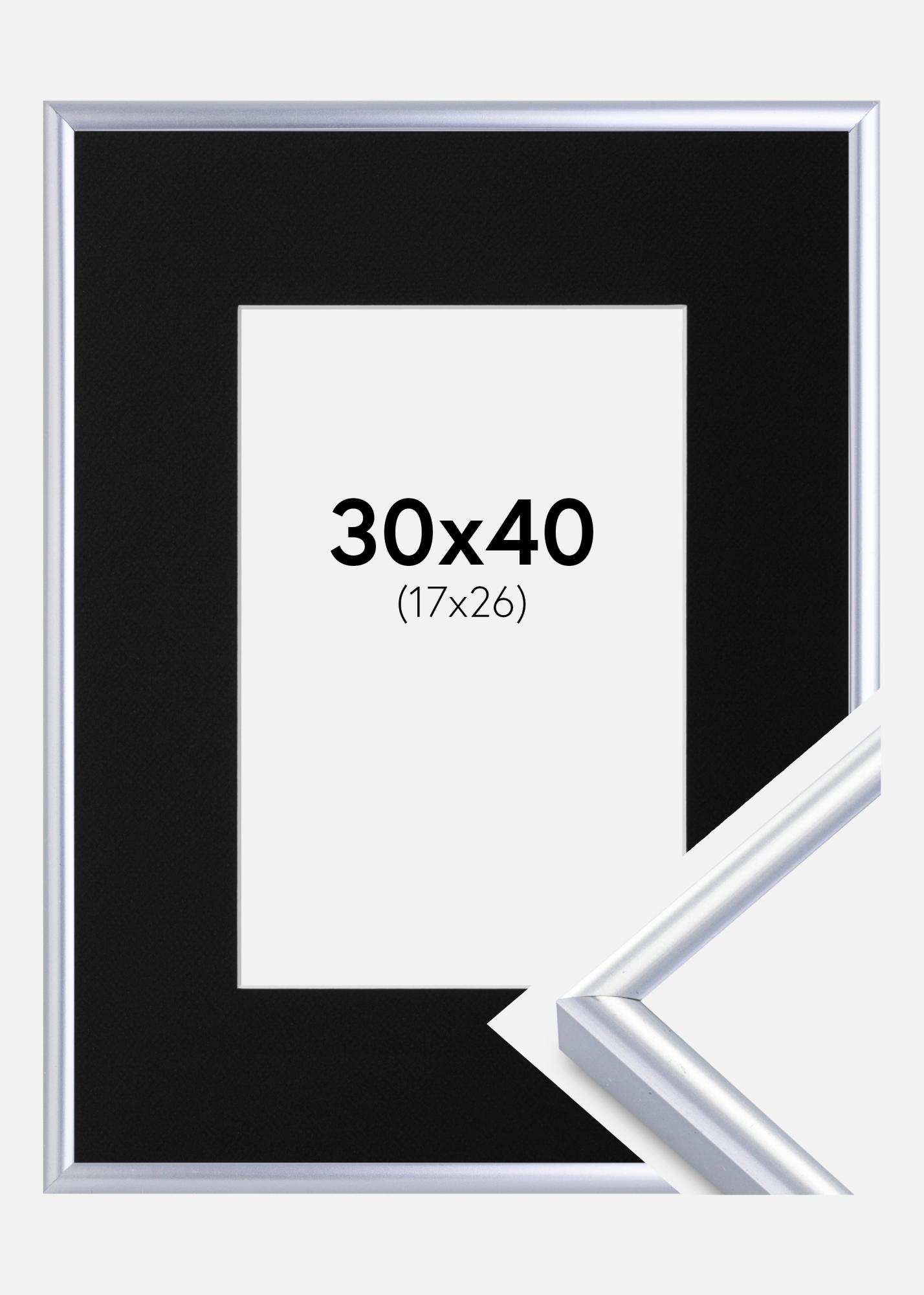 Marco Victoria Plateado 30x40 cm - Paspartú Negro 18x27 cm