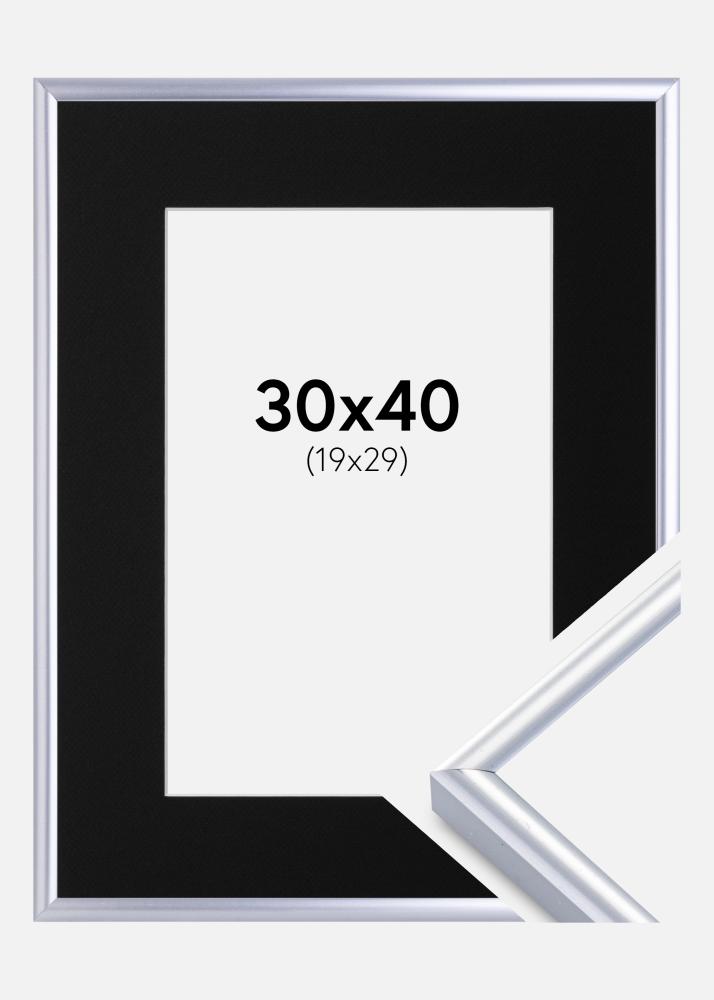 Marco Victoria Plateado 30x40 cm - Paspartú Negro 20x30 cm