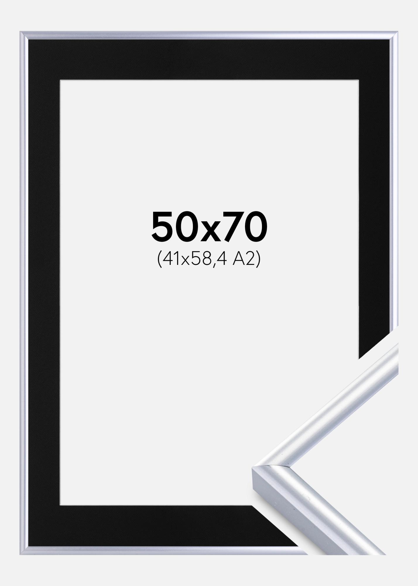 Marco Victoria Plateado 50x70 cm - Paspartú Negro 42x59,4 cm (A2)
