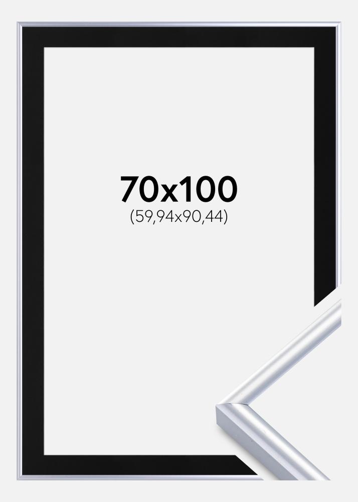 Marco Victoria Plateado 70x100 cm - Paspartú Negro 24x36 inches