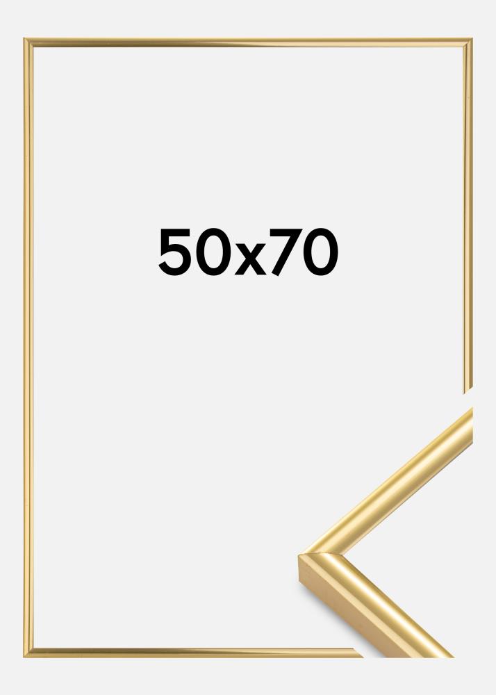 Dale a tus paredes un toque de elegancia con este marco dorado de 50x70 cm. Con su acabado brillante y diseño clásico, este marco para fotos convertirá tu imagen favorita o obra de arte en una verdadera atracción visual. El ancho del marco es de 7 mm, lo que le da una delicada y discreta presentación a tu imagen.