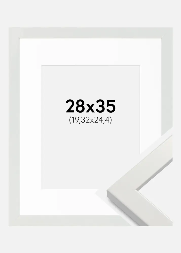 Marco White Wood Glossy 28x35 cm - Paspartú Blanco 8x10 inches
