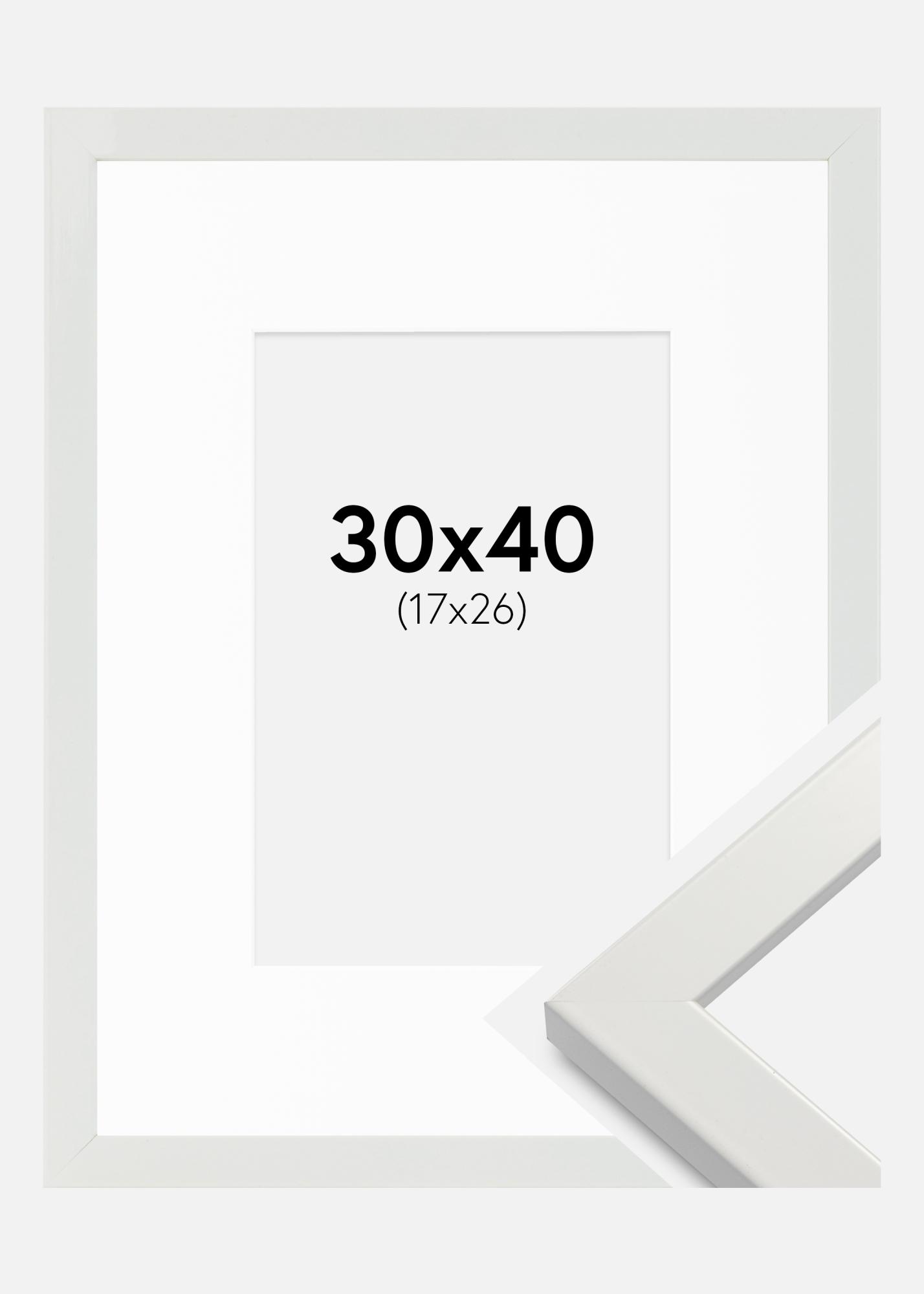 Marco White Wood Glossy 30x40 cm - Paspartú Blanco 18x27 cm