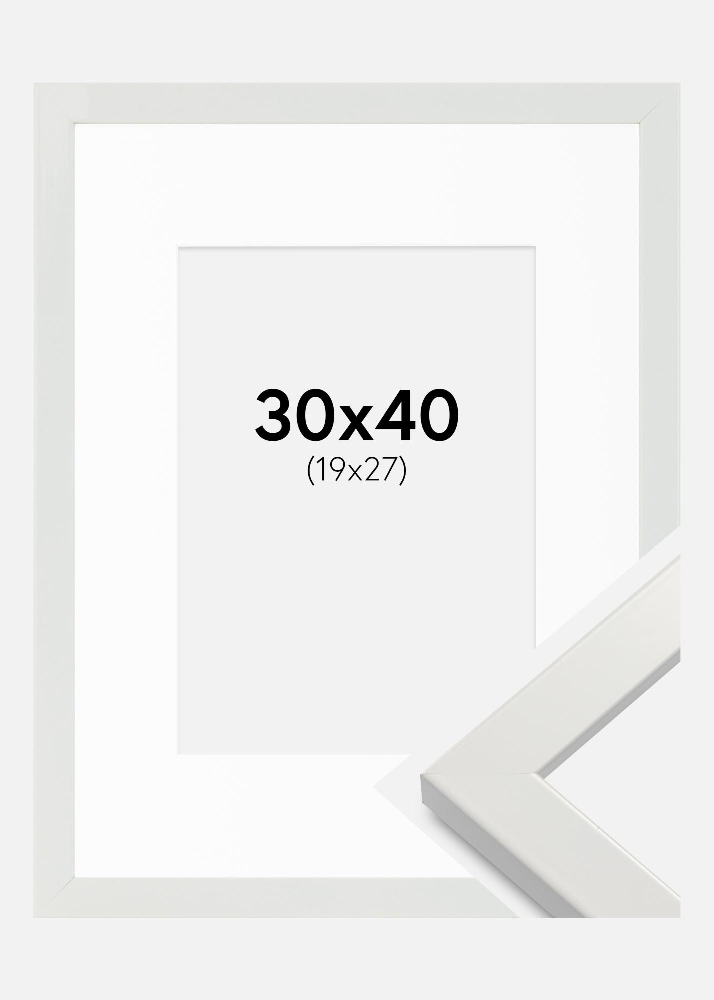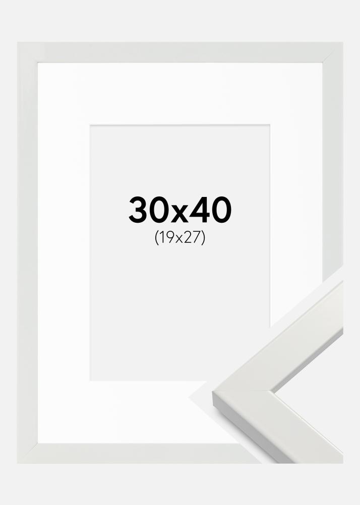Marco White Wood Glossy 30x40 cm - Paspartú Blanco 20x28 cm