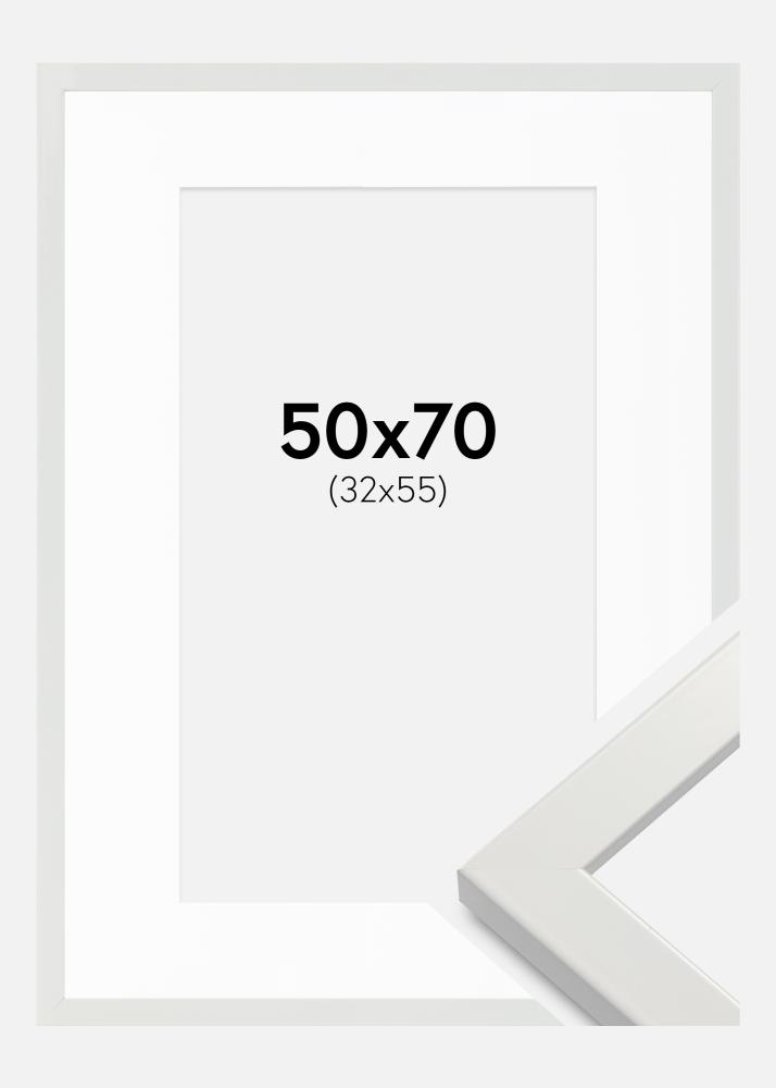Marco White Wood Glossy 50x70 cm - Paspartú Blanco 33x56 cm
