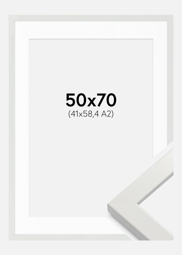 Marco White Wood Glossy 50x70 cm - Paspartú Blanco 42x59,4 cm (A2)