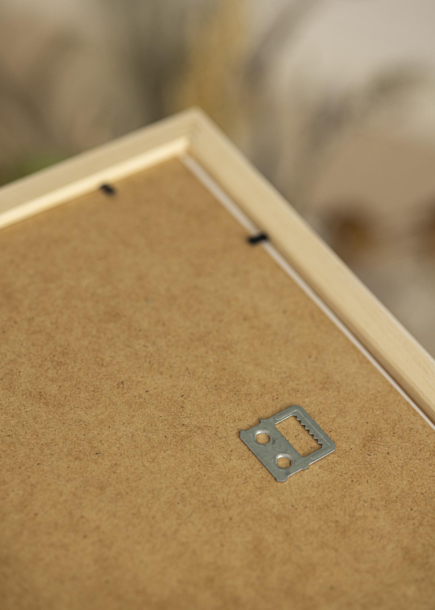 El marco tiene un listón de 22 mm de ancho y una profundidad de 15 mm, lo que proporciona un encuadre estable y robusto. Está equipado con colgadores de metal en la parte posterior, lo que facilita colgarlo tanto horizontal como verticalmente, dependiendo de lo que mejor se adapte a tu motivo. El marco está fabricado en Suecia, lo que garantiza alta calidad y durabilidad.