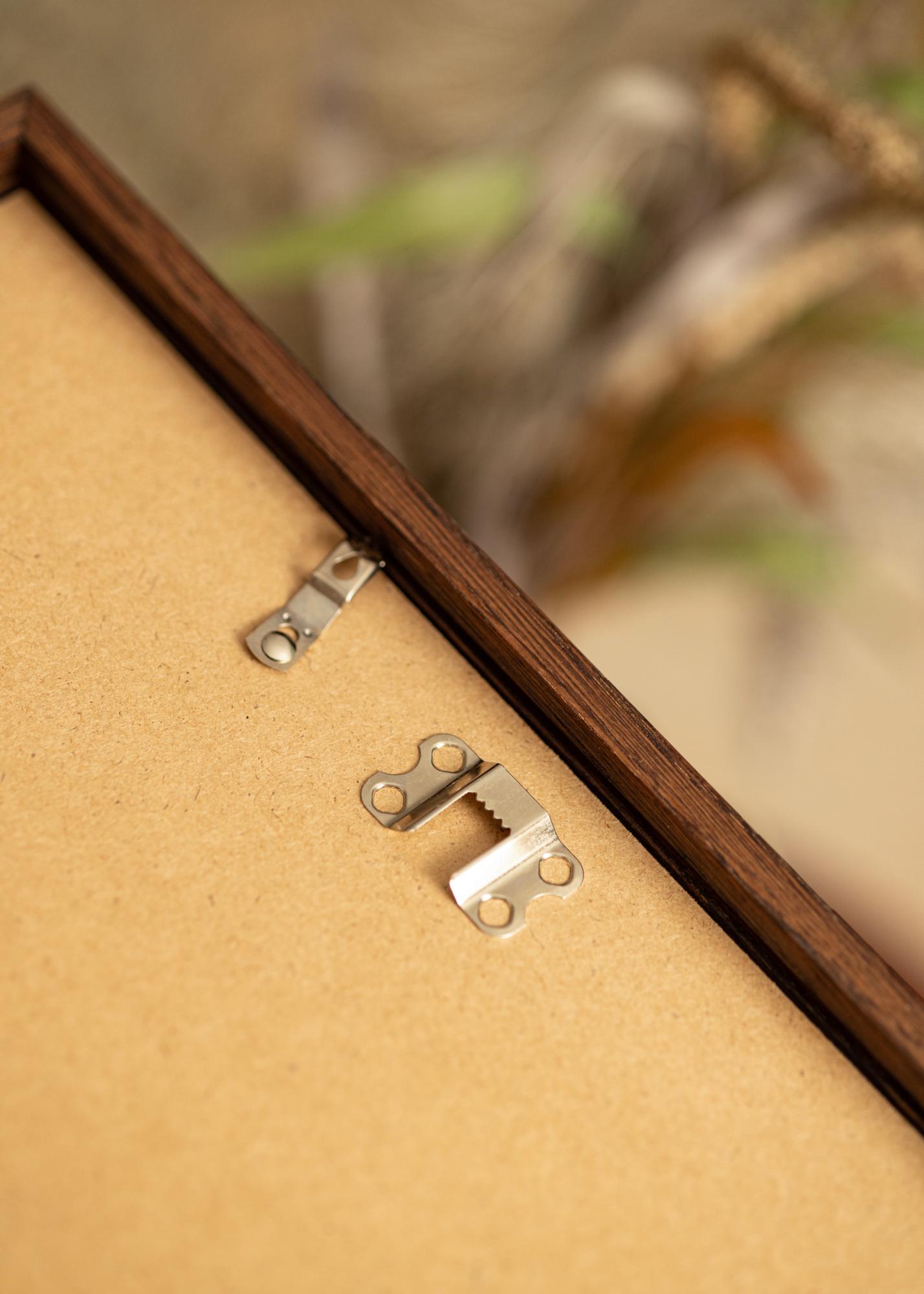 Este elegante marco para cuadros en Roble Oscuro es perfecto para resaltar tus motivos favoritos. Con un tamaño de 42x59,4 cm (A2) es ideal para imágenes y pósters grandes. La estructura de madera cálida y marrón oscuro con vetas visibles ofrece una sensación auténtica de madera y agrega un encanto rústico tanto a interiores modernos como rurales.