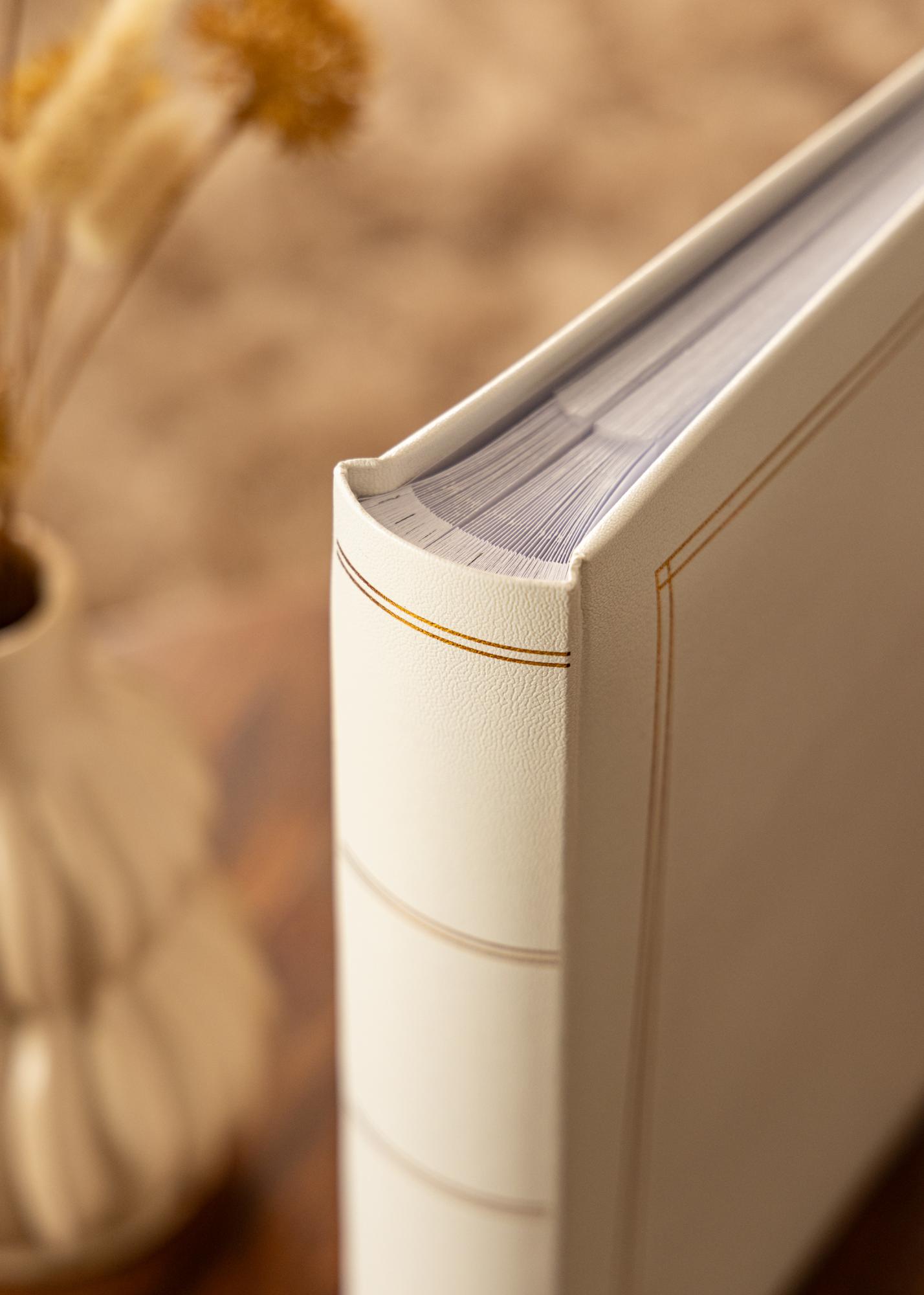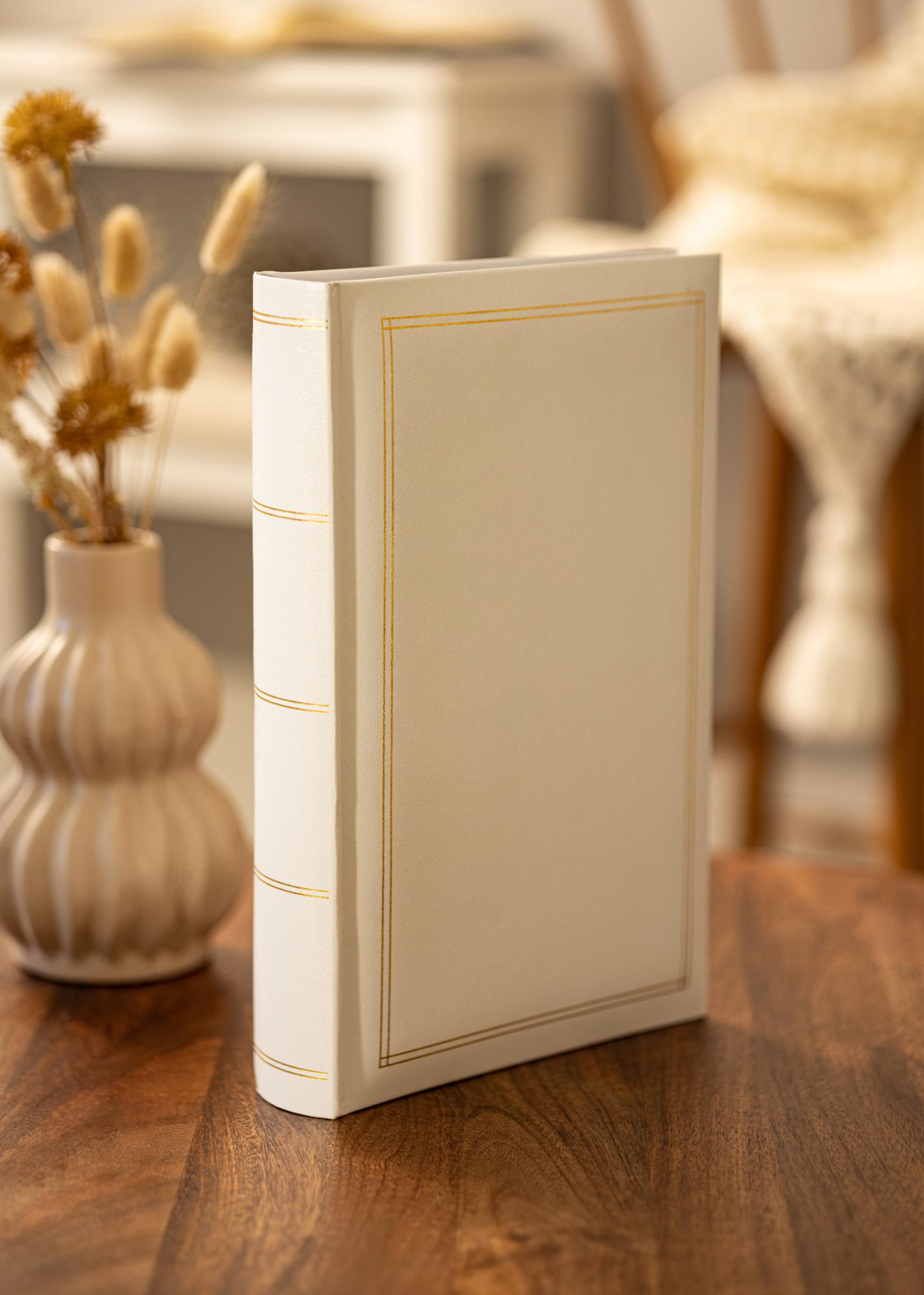 ¡invita a tu familia y amigos a un momento acogedor mientras repasan viejos y hermosos recuerdos! En este elegante álbum de fotos podrás colocar hasta 300 imágenes de tamaño 10x15 cm. Debido a que las fotos se colocan en bolsillos, el montaje es rápido y sencillo, y en cada bolsillo hay espacios de escritura con líneas. La cubierta es elegantemente blanca con dobles líneas doradas a lo largo de los bordes y en el dorso, lo que le da una sensación de lujo adicional. ¡Prepara algunos aperitivos, deja que la música agradable suene en los altavoces y comienza tu viaje nostálgico hacia el pasado!