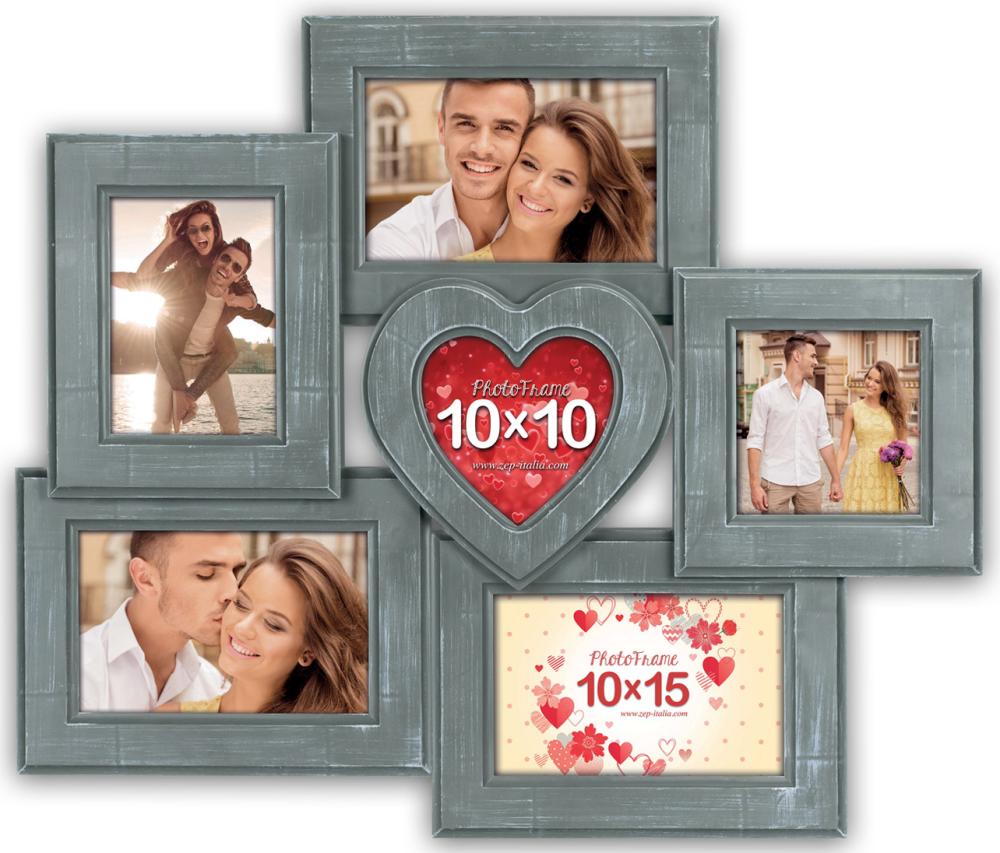 Esta es una bonita marco collage en un diseño romántico. En el centro hay un marco en forma de corazón que está elegantemente enmarcado por otros marcos en formato vertical y horizontal. ¡La foto que Eliges colocar allí realmente se convertirá en el punto focal del cuadro! Este marco te permite enmarcar 6 fotos diferentes en tamaños de 9x13 cm, 10x10 cm y 10x15 cm. Este marco collage tiene un bonito tono gris y está hecho de material compuesto. Incluye soporte para colgar en la pared.