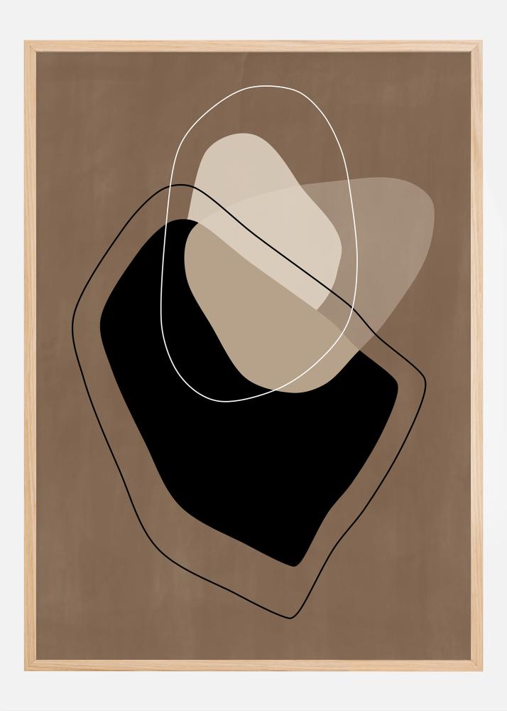 Este póster combina la claridad estética de la abstracción geométrica con una paleta de colores cálidos y acogedores. Presenta una interacción creativa entre matices oscuros y claros, donde formas negras audaces contrastan con líneas blancas suaves y campos de color beige y topo. Esta constelación de elementos está rodeada por un fino borde blanco que crea una ilusión de espacio y profundidad. Este póster es perfecto para quien aprecia el diseño moderno y busca una obra de arte que combine colores y formas contrastantes de una manera tanto reflexiva como estéticamente atractiva.