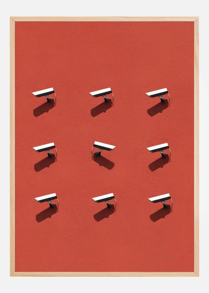 El profundo tono rojo del fondo crea un fuerte contraste con las cámaras en blanco y negro, generando una sensación de vigilancia y seriedad. Esta impresión encaja perfectamente en una decoración moderna donde el arte se encuentra con cuestiones sociales y es un tema de conversación ideal para oficinas, salas de estudio o salas de estar. Deja que este póster sea parte de tu decoración e inspire discusión y conciencia sobre el mundo en el que vivimos.