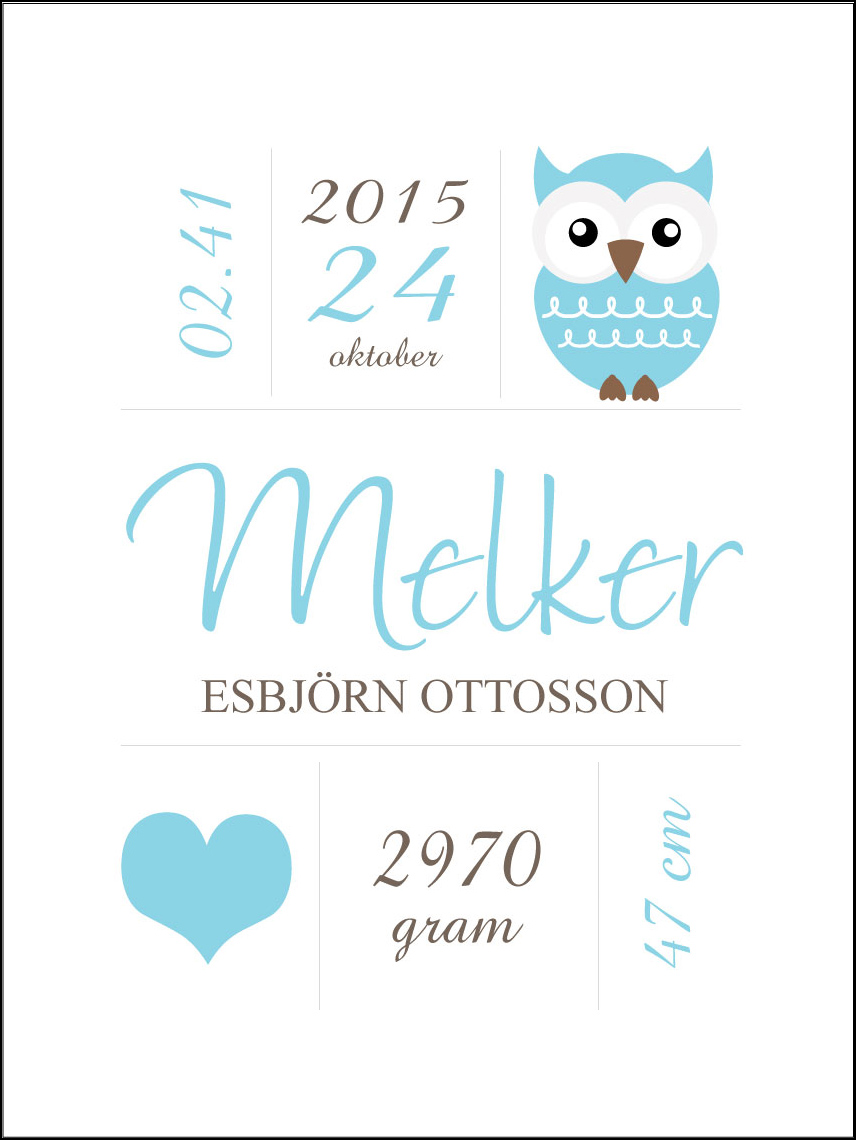 Owl Birth Póster Blue (21x29,7 cm (A4))