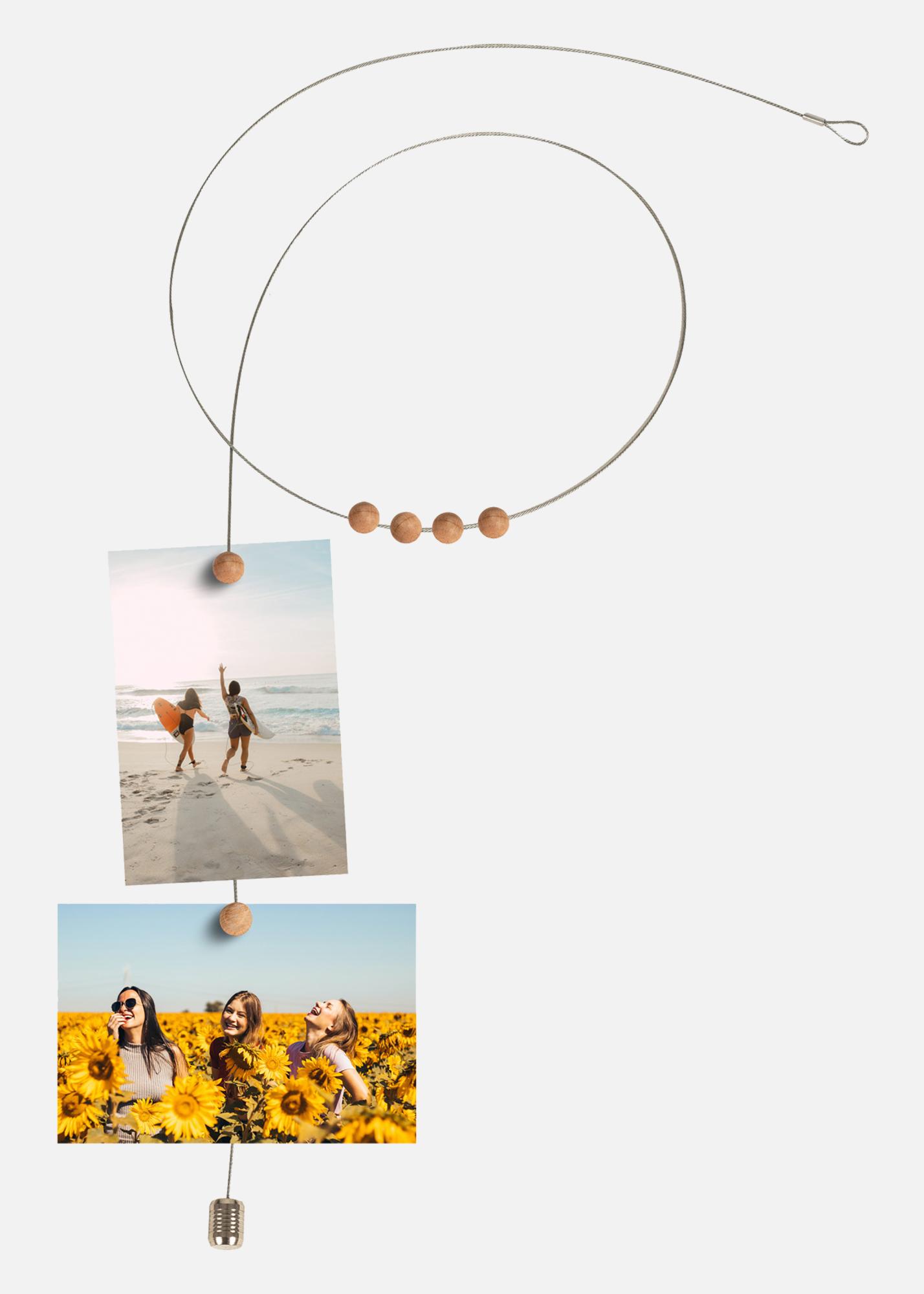 PAC Cuerda para fotos Plata es una cuerda de 150 cm de largo con un elegante color plata, perfecta para colgar fotos, tarjetas u otros detalles decorativos. La cuerda incluye potentes imanes para una fácil suspensión. Una manera conveniente y creativa de mostrar tus fotos favoritas en la pared.