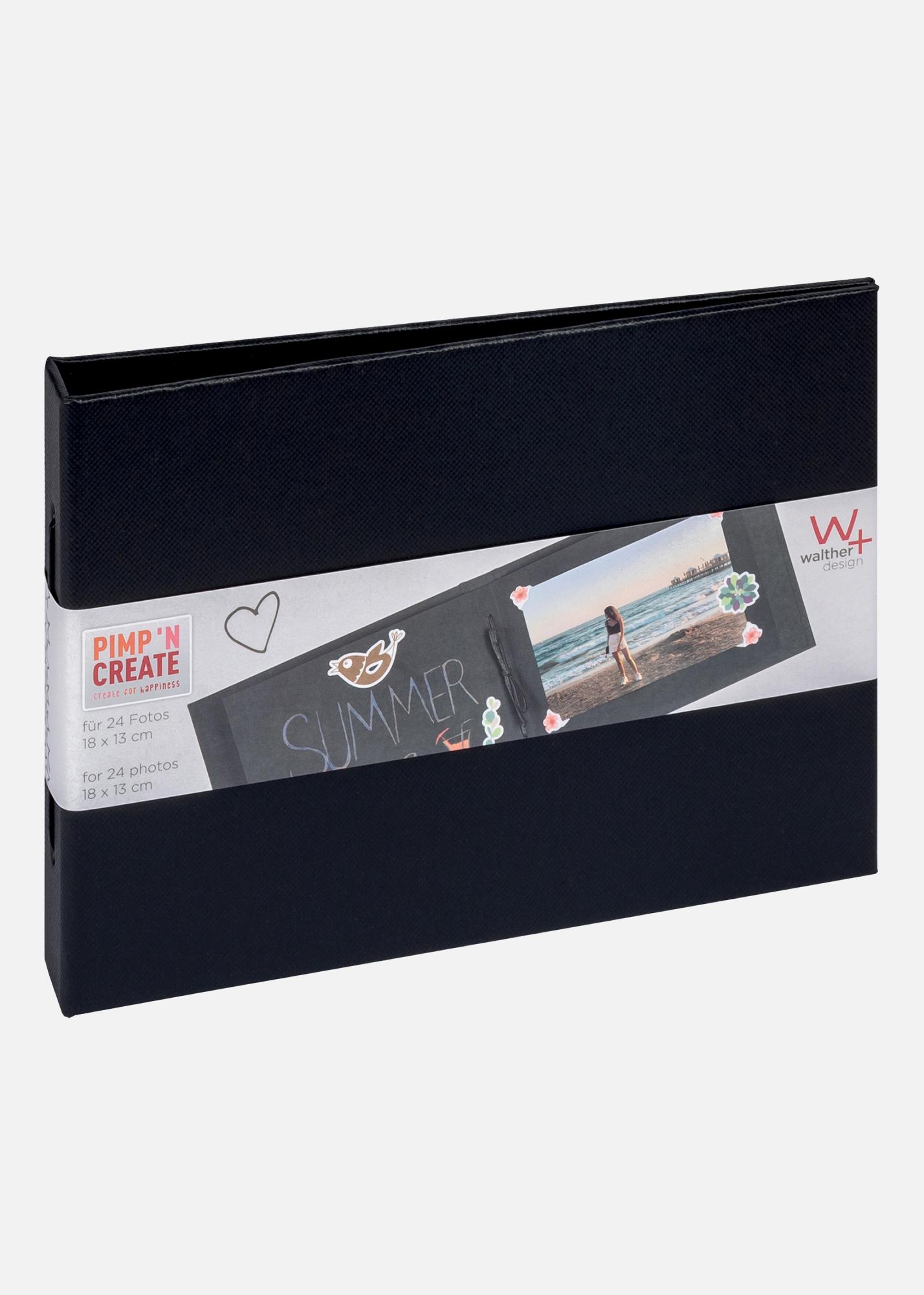 El álbum tiene un total de 12 páginas negras, lo que equivale a 6 hojas, donde puedes pegar tus fotos favoritas. Las páginas negras proporcionan un fondo elegante que resalta tus fotos de la mejor manera. Las cubiertas en negro le dan al álbum un aspecto clásico y atemporal que se adapta a todas las ocasiones.
