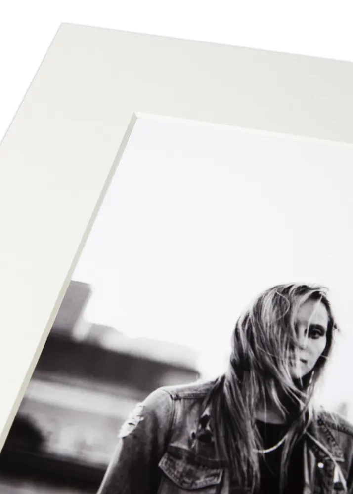 Exquisito paspartú blanco en un diseño diferente que brinda una sensación moderna y encantadora a tus mejores fotos. Una excelente elección cuando quieres resaltar una imagen que te gusta especialmente.