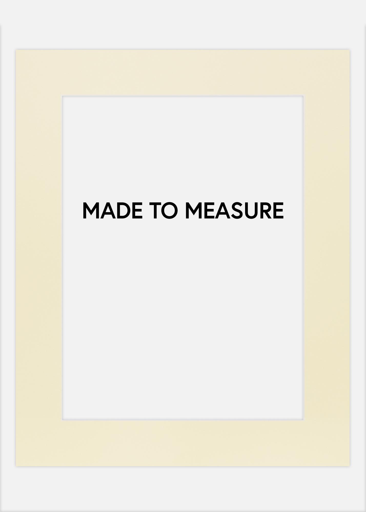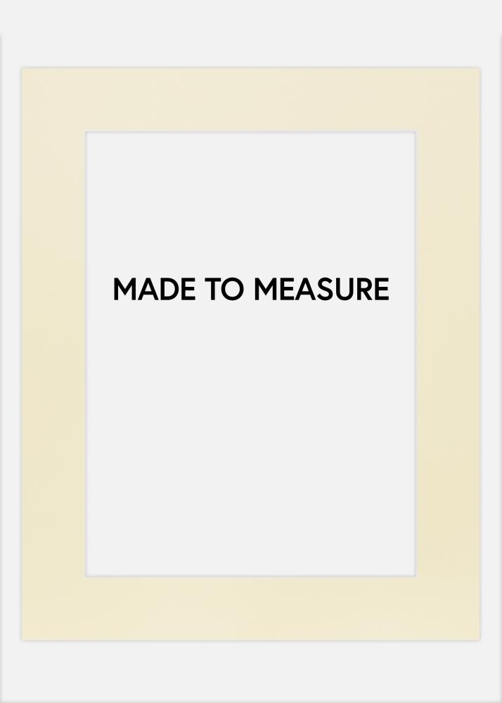 ¡El paspartú crema (borde interior blanco) se fabrica completamente según tus deseos! Sigue nuestras instrucciones para calcular fácilmente las medidas que quedarán bien con tu imagen.