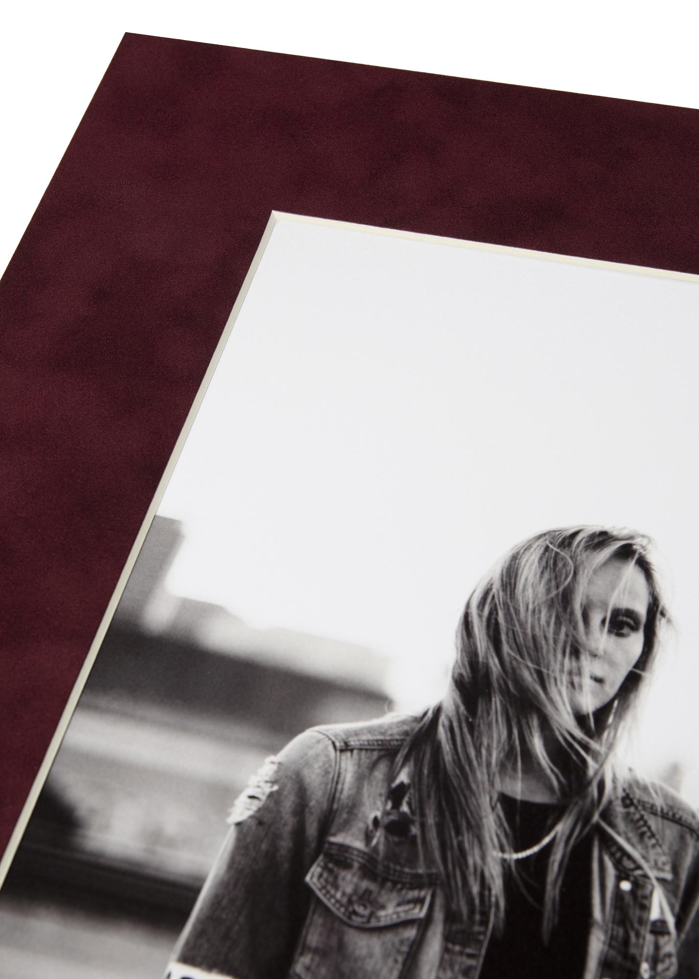 Este lujoso paspartú con sensación de gamuza tiene un hermoso tono rojo oscuro. No es tan común, ¡pero es aún más especial! Además, el paspartú es libre de ácido y pH neutro.