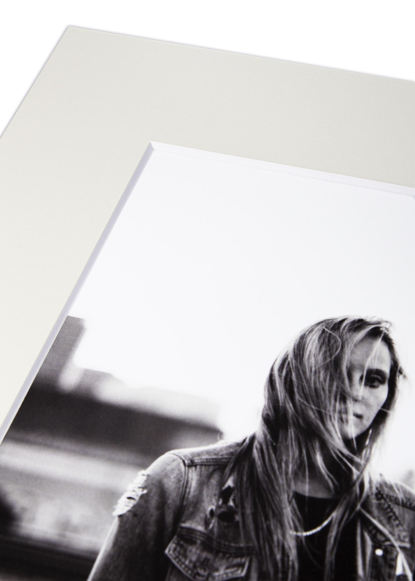 Con un paspartú, creas profundidad y una sensación más exclusiva para tu motivo. Tu imagen también está protegida ya que el paspartú evita que esté en contacto directo con el vidrio. El paspartú White Elephant tiene un tono blanco neutral y hermoso que se adapta a todos los motivos.