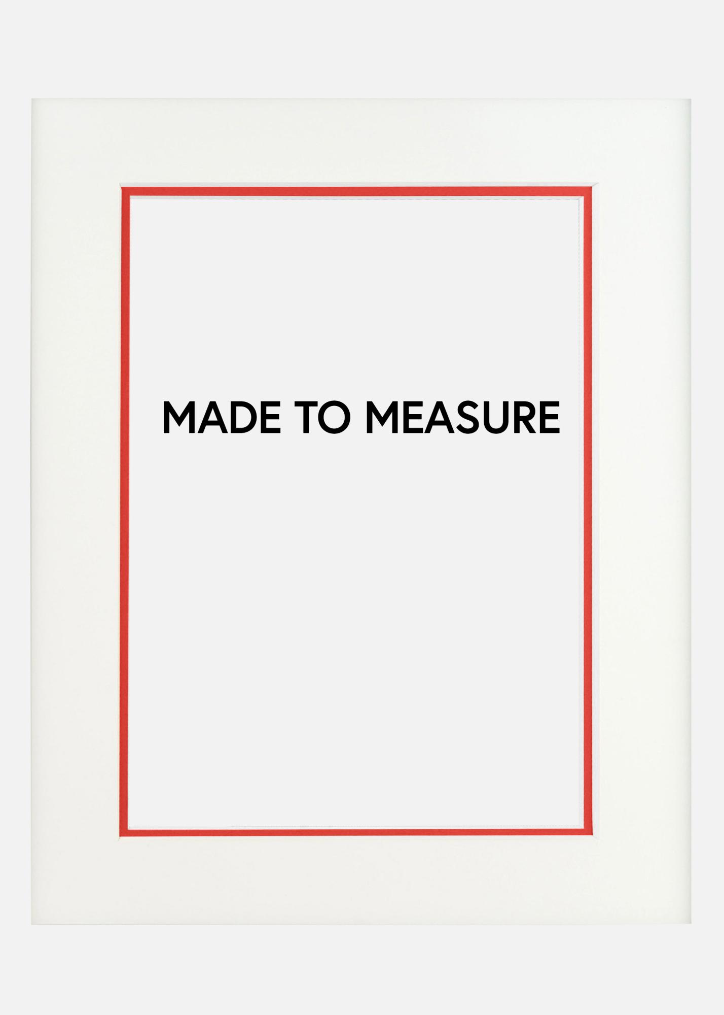 Marco personalizado a medida en dos capas con un marco blanco como base y una capa inferior en rojo que proporciona un borde de color de 5 mm alrededor de la imagen. Perfecto cuando quieres crear un enmarcado llamativo que resalte tu imagen y le dé una mayor profundidad al motivo. Todos nuestros marcos tienen bordes cortados en un ángulo de 45 grados, lo que proporciona un enmarcado serio y profesional para tus imágenes.