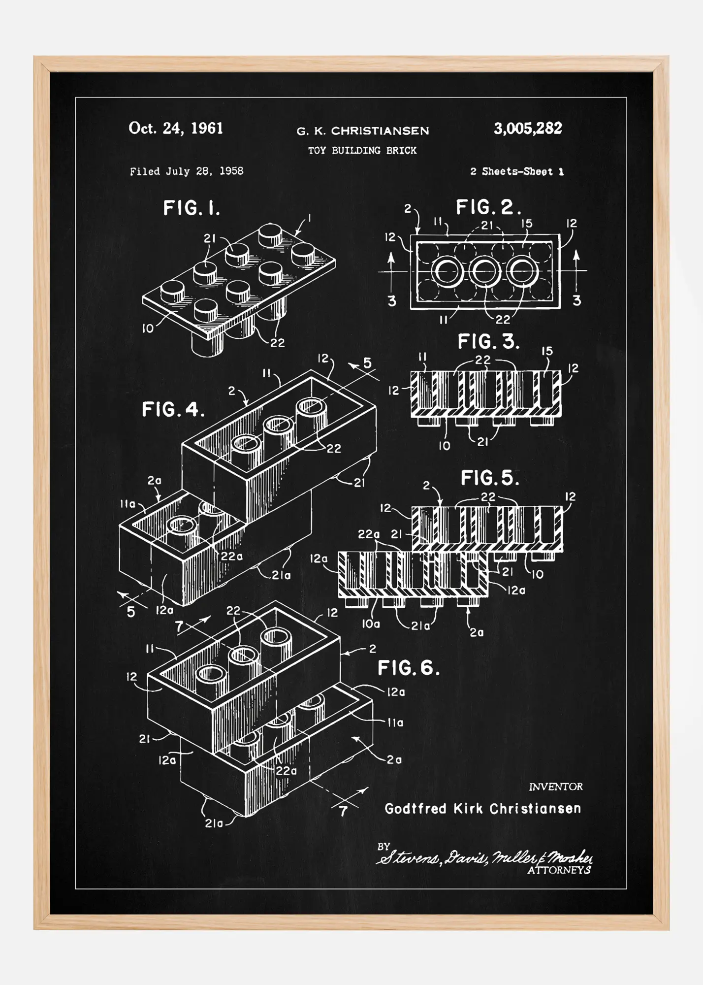 En este póster, el diseño icónico del bloque de construcción es bellamente representado desde varias perspectivas y secciones transversales, las cuales se muestran en la Figura 1 a la 6. Cada línea y forma se retrata con un increíble nivel de detalle, lo que resalta la cuidadosa simplicidad y funcionalidad de su diseño. Es una obra de arte que encaja perfectamente en una habitación infantil, un área de juegos, o como parte de una exhibición de colección, inspirando tanto a jóvenes como a mayores a descubrir y redescubrir la pura alegría de construir y crear con sus propias manos.