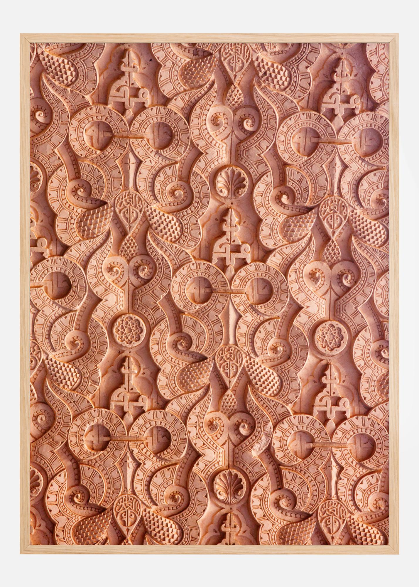 Este fascinante póster es una muestra de riqueza en detalles y habilidad artesanal. El motivo consiste en un patrón complejo con intrincadas perforaciones que juntas crean un diseño simétrico e hipnotizador. El póster es un homenaje a la ornamentación tradicional y las muchas formas de expresión que se pueden lograr con un diseño bien pensado. Esta es una impresión que encaja con el interesado en la decoración que quiere añadir un toque de riqueza cultural y sofisticación a su hogar u oficina.