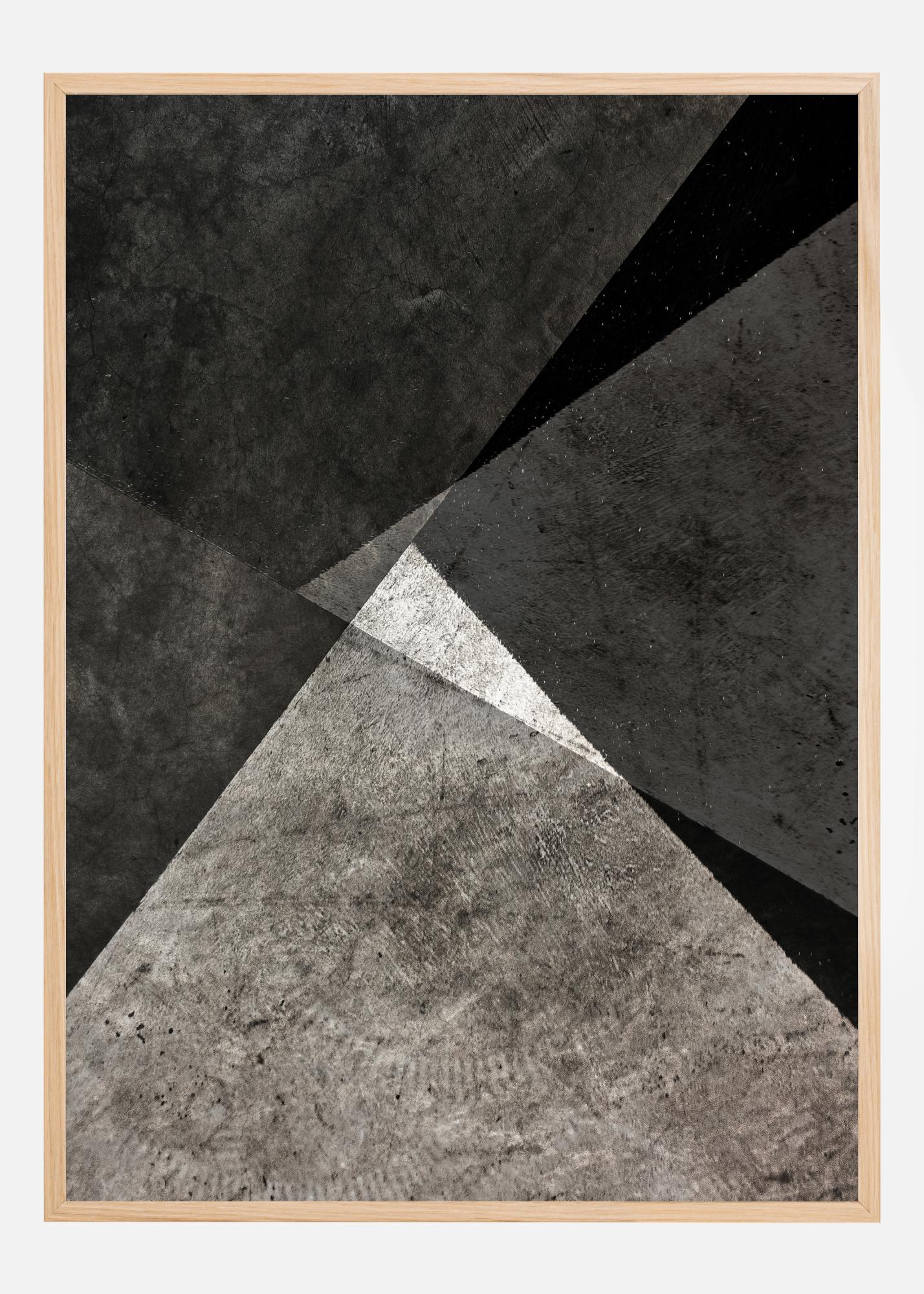 Una misteriosa impresión con formas triangulares blancas y negras colocadas en el suelo. Con la luz natural que ilumina las baldosas, no está claro si el triángulo más pequeño es blanco o si solo está iluminado por la luz. Este es un póster perfecto para colgar en una pared lisa.